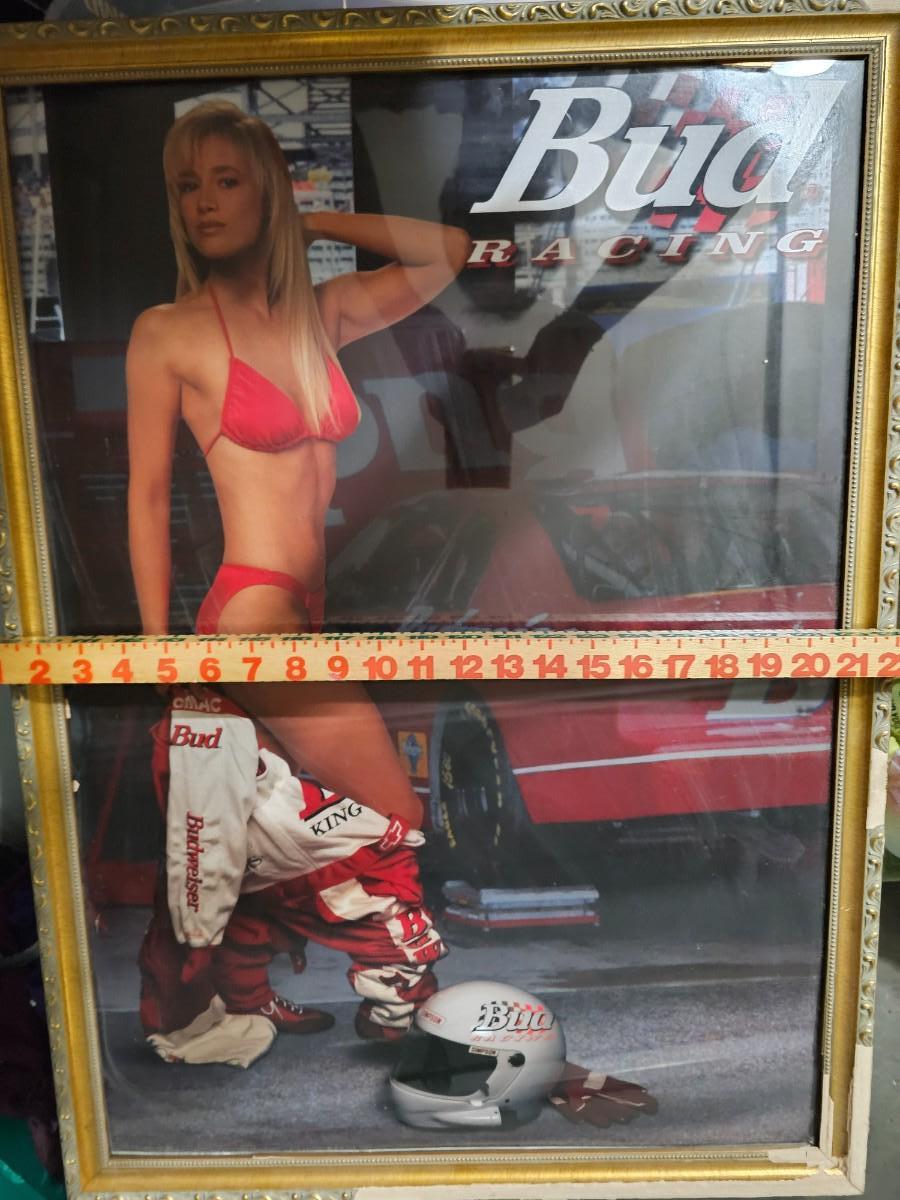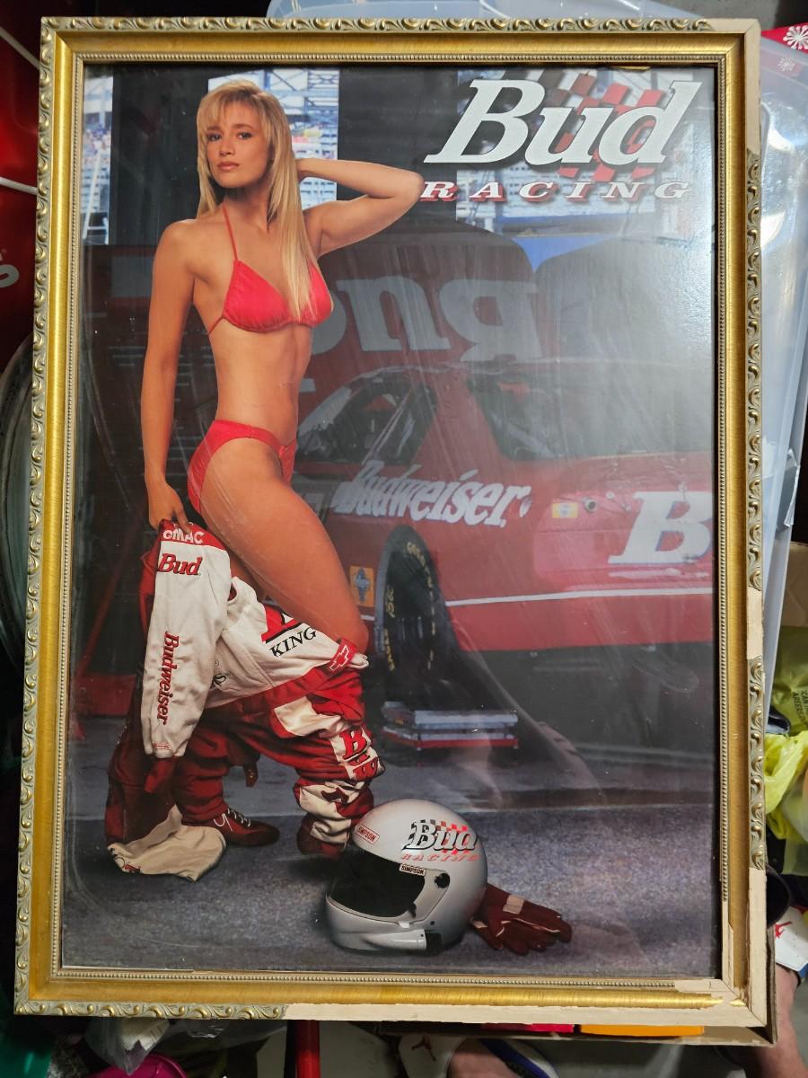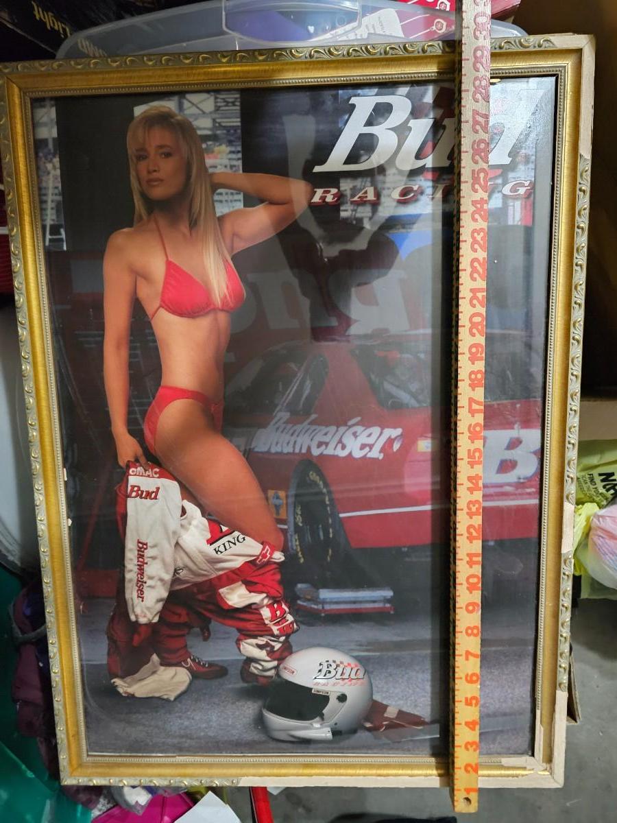 Vintage Bud Racing Budweiser Large Framed Picture. Collectible Rare Art Photo.