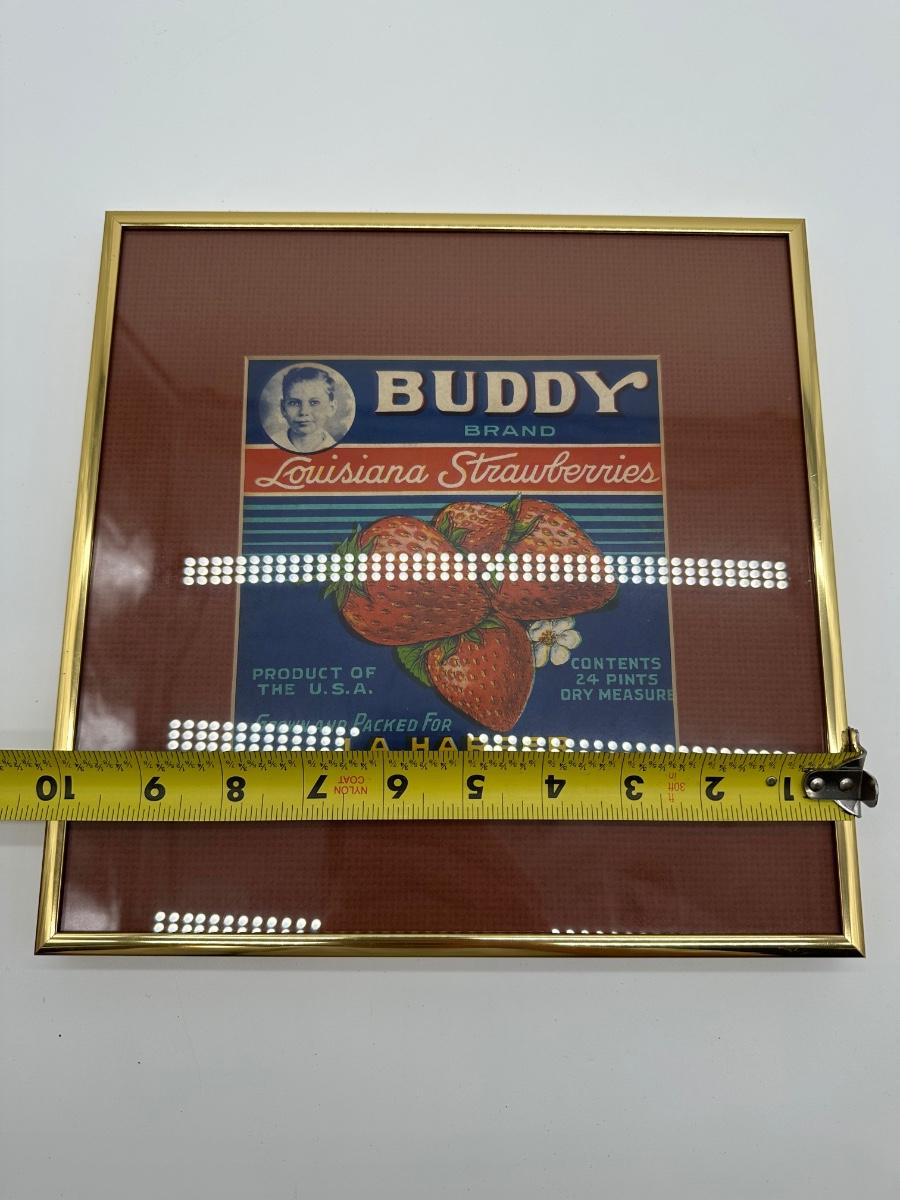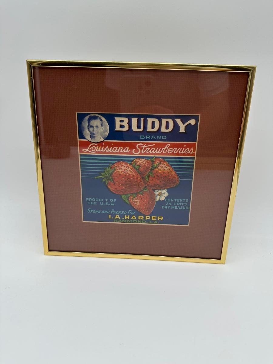 Vintage “Buddy Brand” Louisiana Strawberries Crate Label – Framed – Hammond, LA