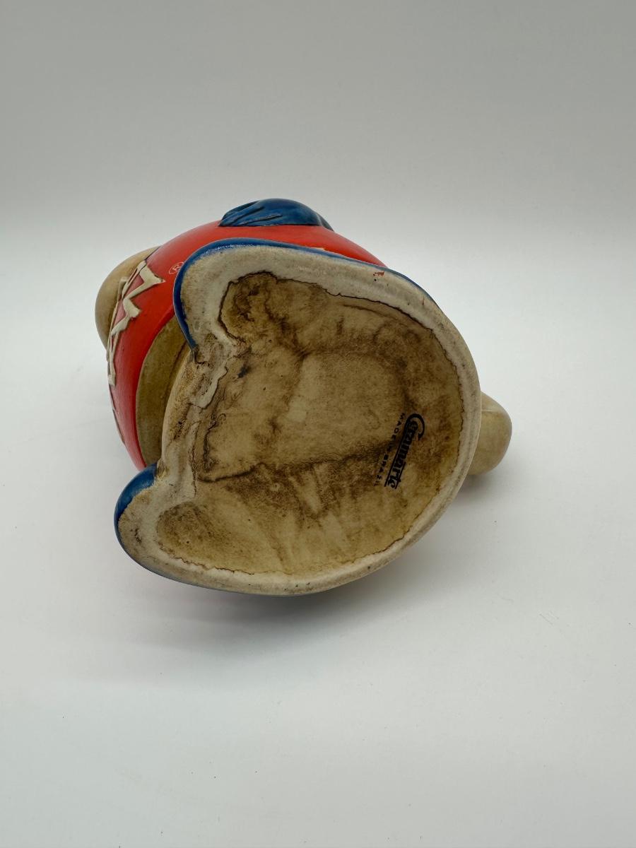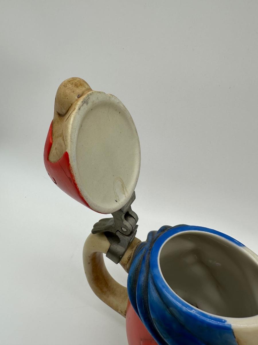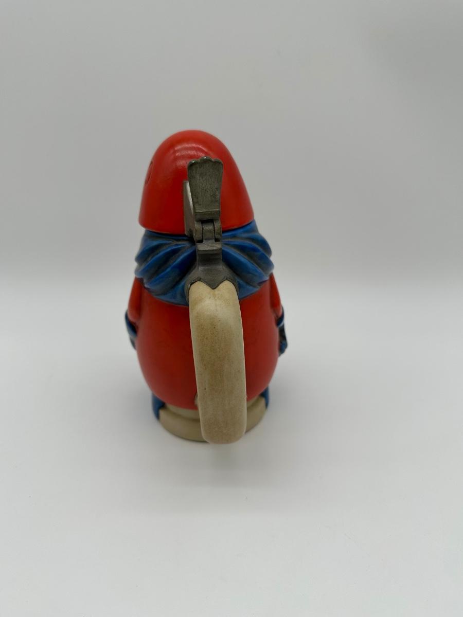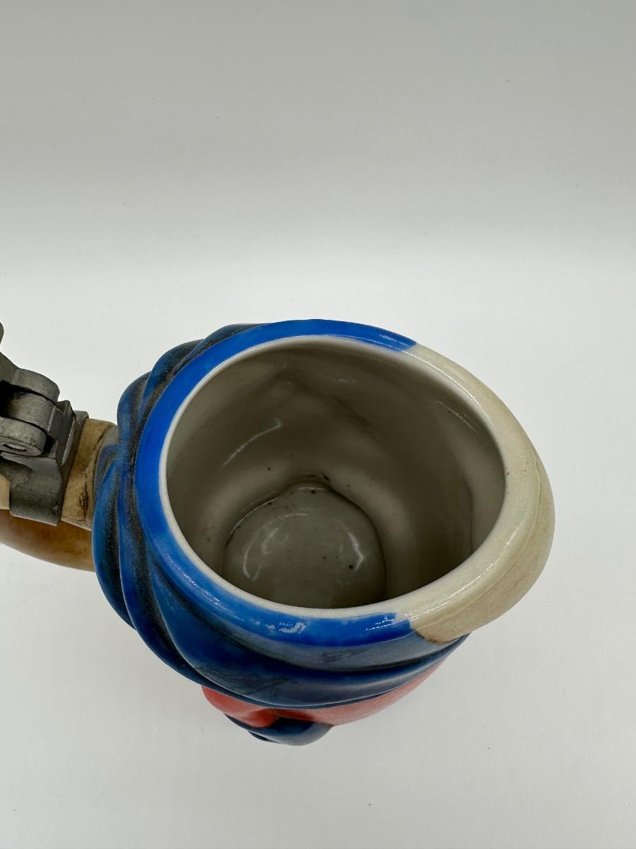 Vintage Budweiser “Bud Man” ceramic beer stein featuring the classic Bud Man character in red and blue with hinged metal lid. Produced for Anheuser-Busch as a promotional collectible. Great display piece for a bar, man cave, or beer memorabilia collection.
