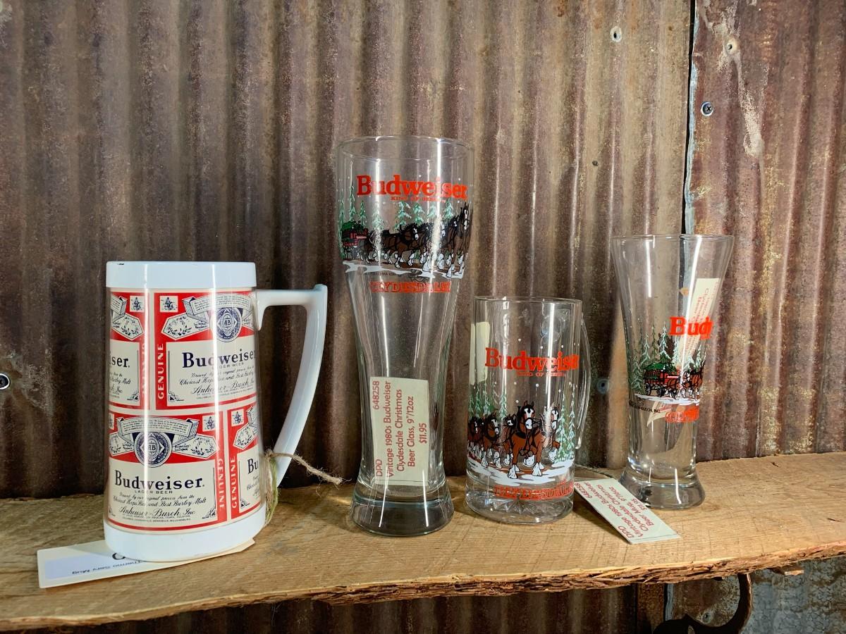 Here we Have 4 Plastic Covered Placemats, a Tall Budweiser bottle Bank (Plastic) and 3 Christmas Glasses (with Clydesdale) and 1 Mug- Winning Bid Buys All Items Shown, All Item(s) are Sold As Is - Photo's Are Part of the Description - Pickup by Appointment, or Shipping is Available (Buyer Pays)
