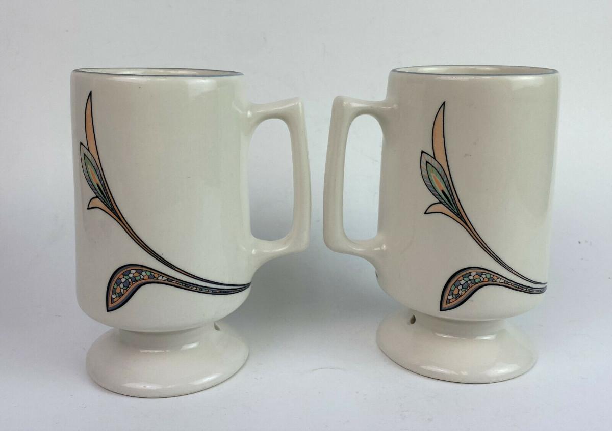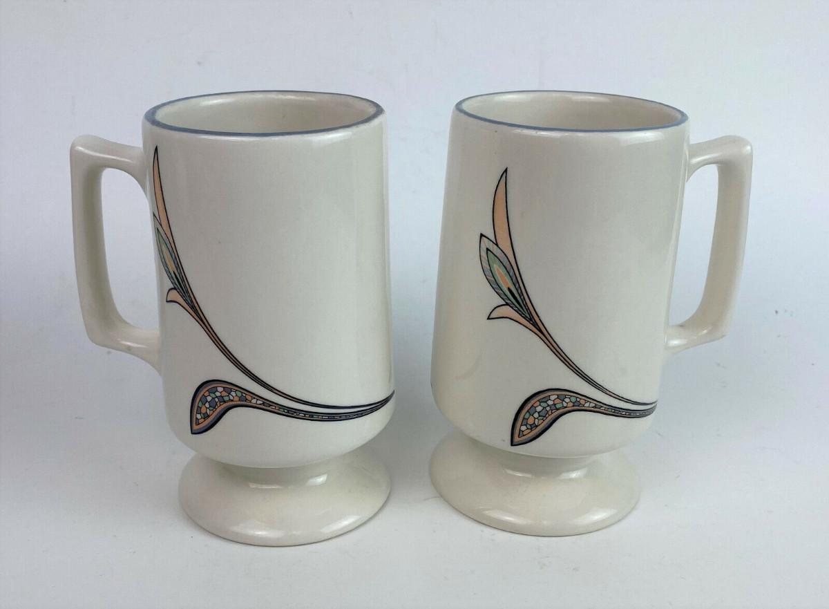 Vintage BUFFALO CHINA IRISH COFFEE MUGS pair 1980s