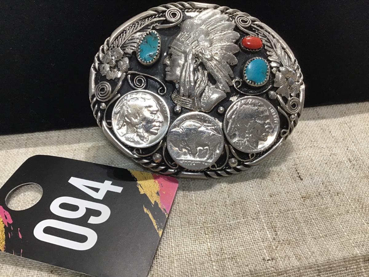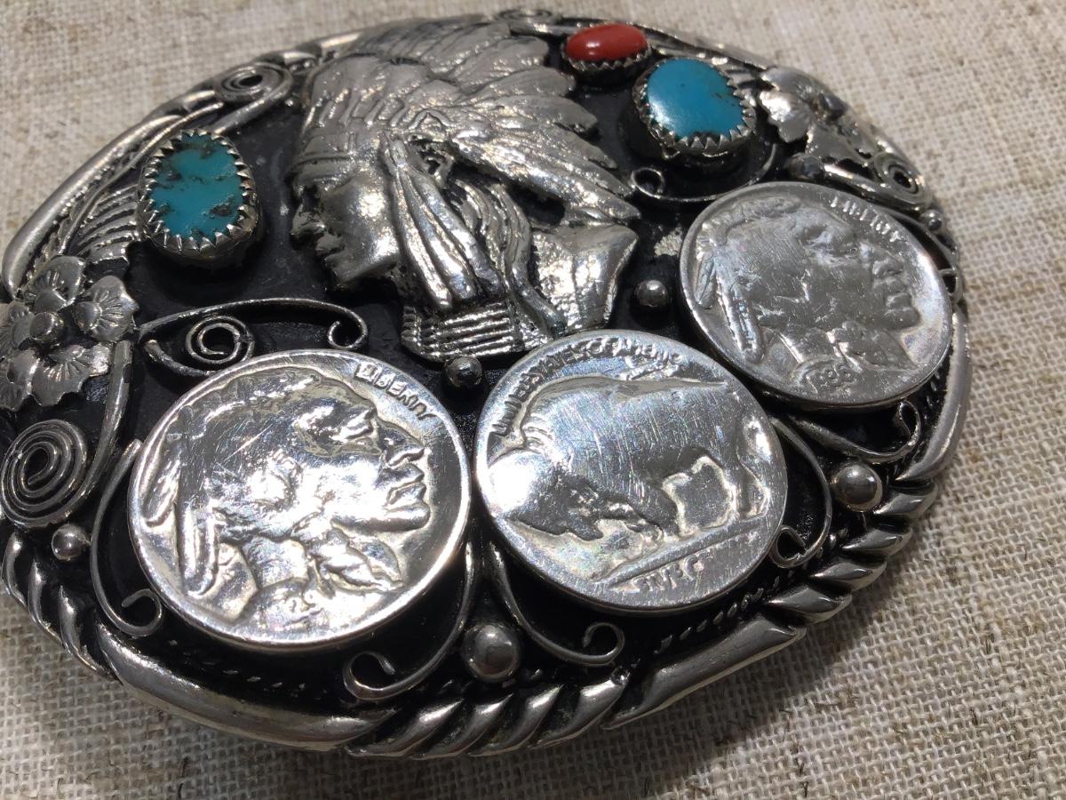 Vintage Buffalo Nickel Belt Buckle with Turquoise