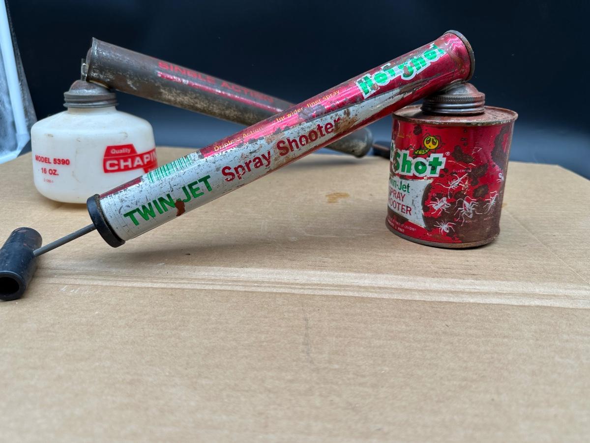 Vintage Bug Spray Applicator Lot – Chapin Single Action Mist Sprayer & Hot Shot Twin-Jet Shooter
