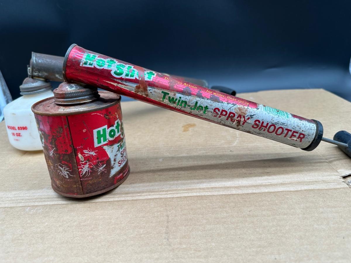 • Hot Shot Twin-Jet Spray Shooter metal canister applicator with original graphics