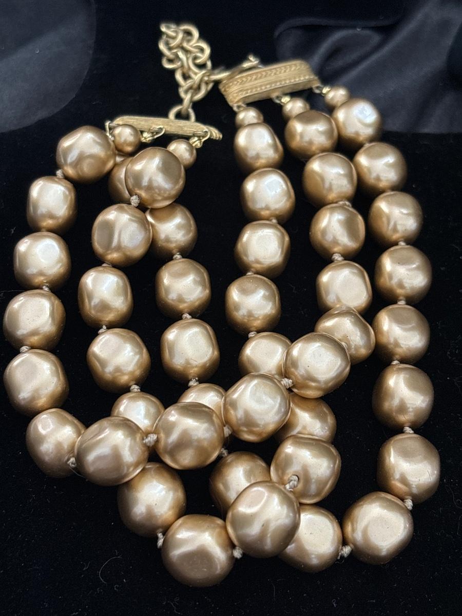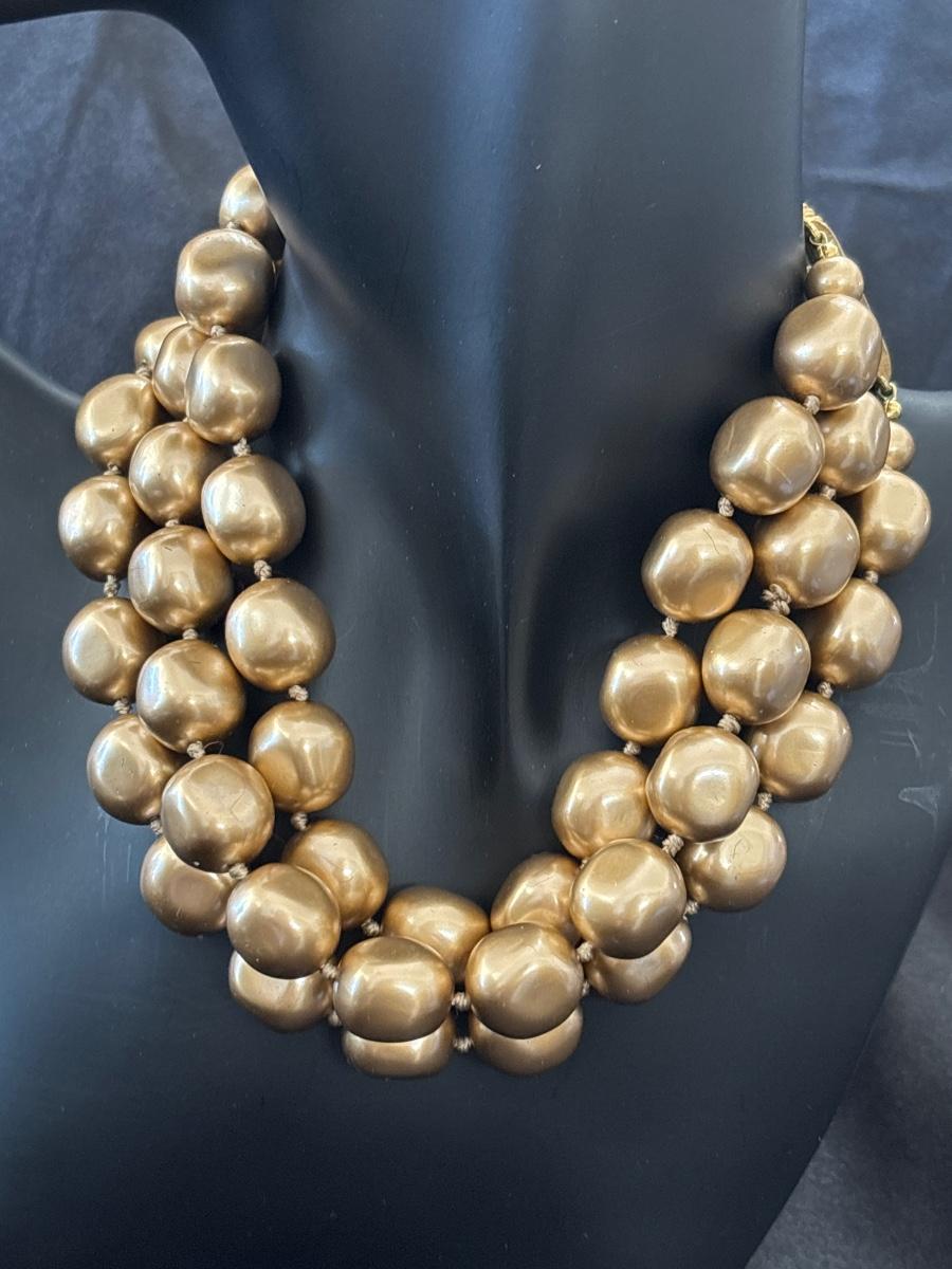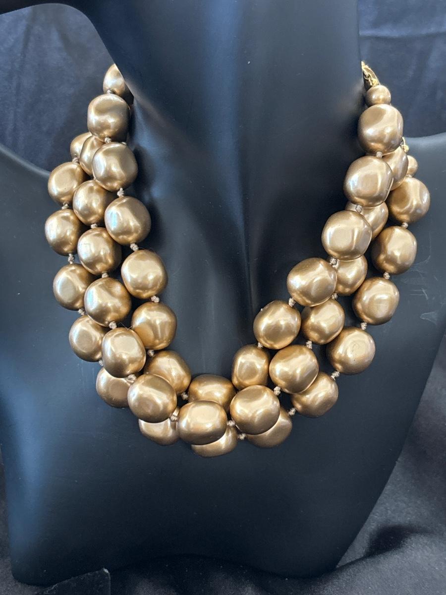 Vintage bulky statement gold tone beaded 3 stranded necklace