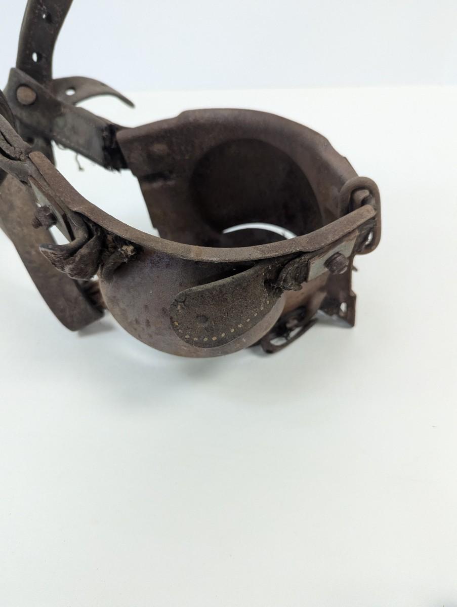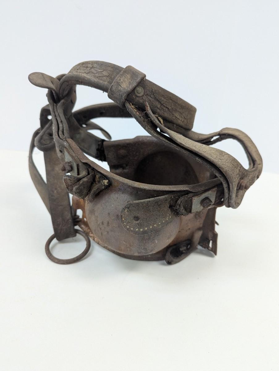 Made of metal and leather, these blinds were used to keep bulls focused during rodeo competitions. While their provenance is unknown, they were likely manufactured in the United States and are a great addition to any Western Americana collection.