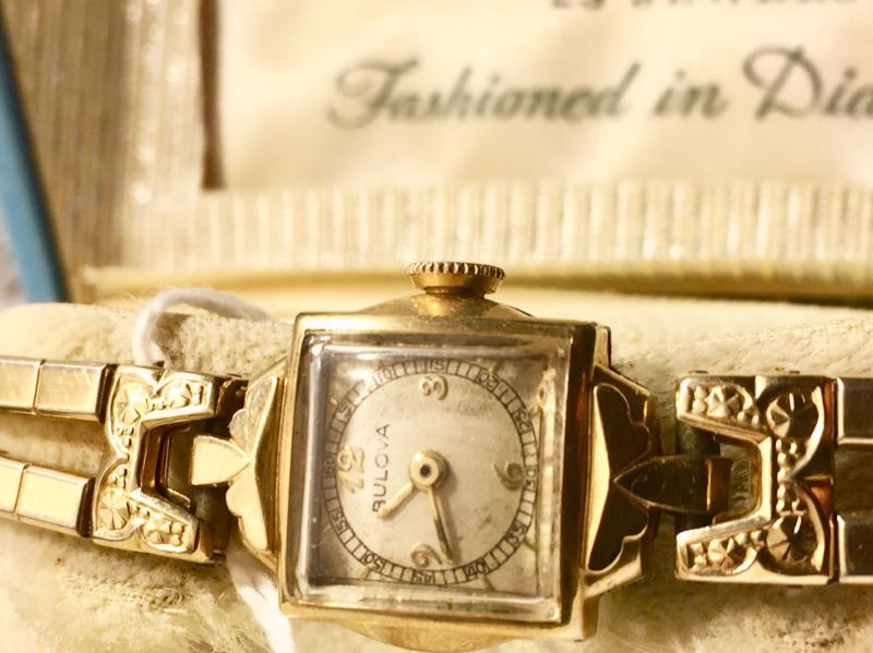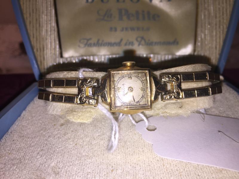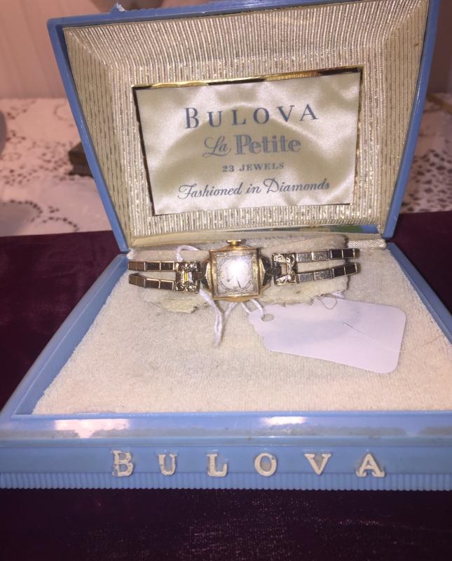 Vintage Bulova women’s watch Along with vintage box! This is a beautiful box in great vintage condition. The watch is also quite a beauty and will be a great addition for a collector it needs a little TLC and cleaning but it’s a fantastic time piece.