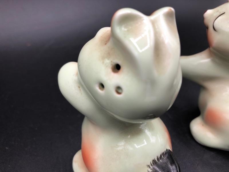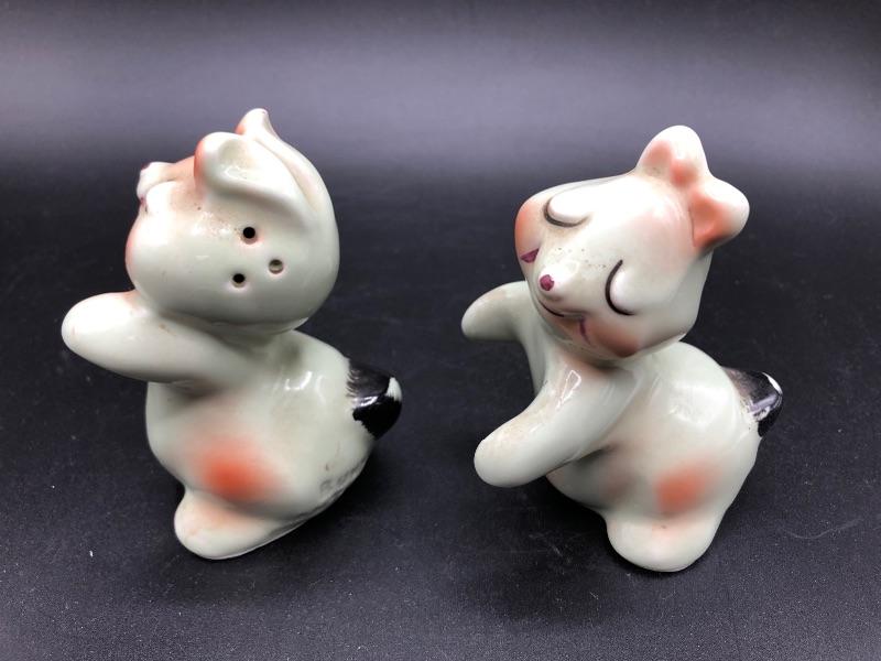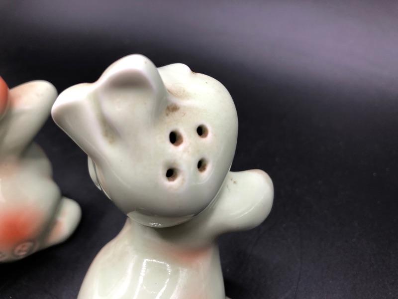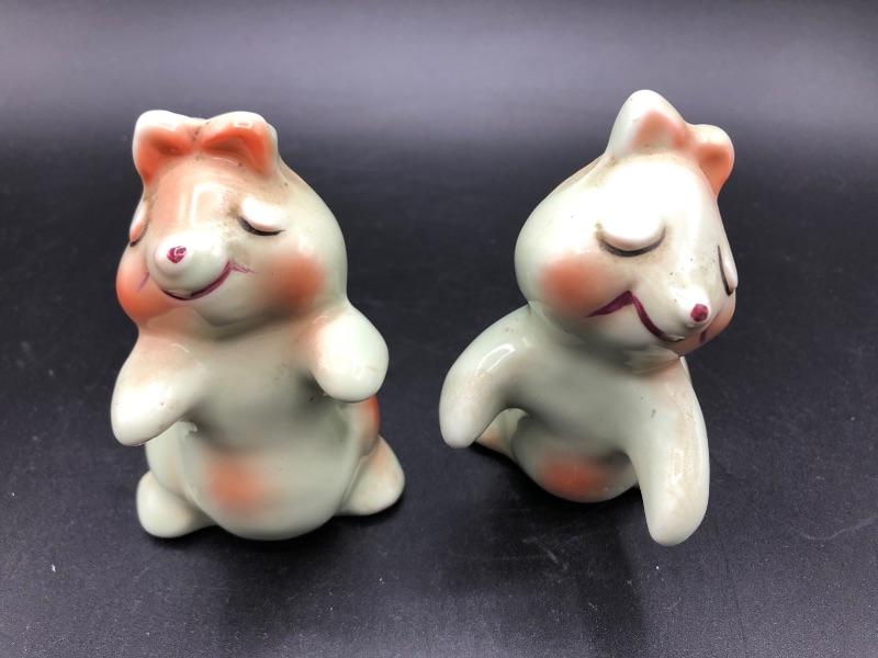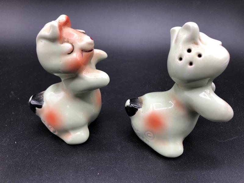Vintage shaker set. Bunny hug salt and pepper, fit together in an embrace. Very cute addition to one's collection. Good condition.