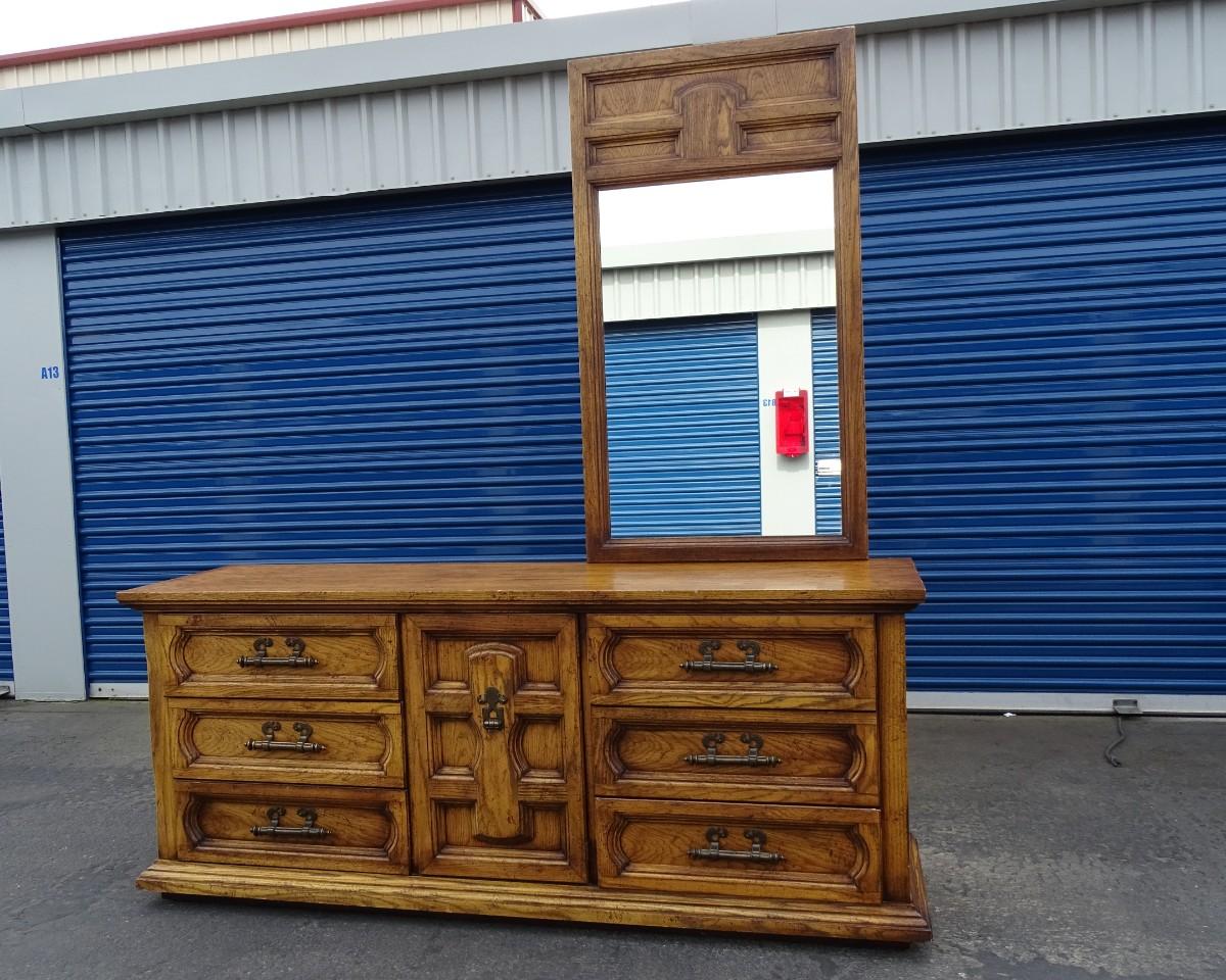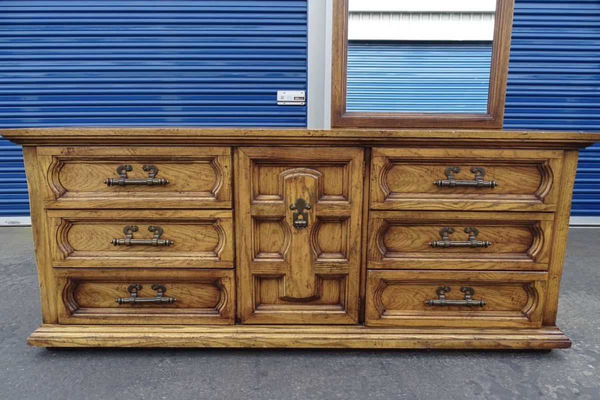 Vintage Burlington Traditional Dresser with side mirror and cross on middle door