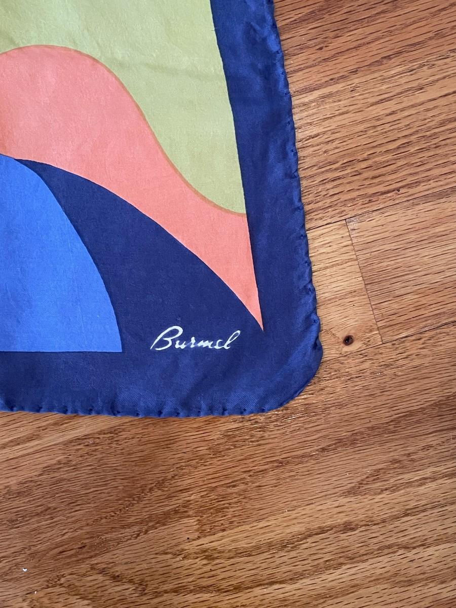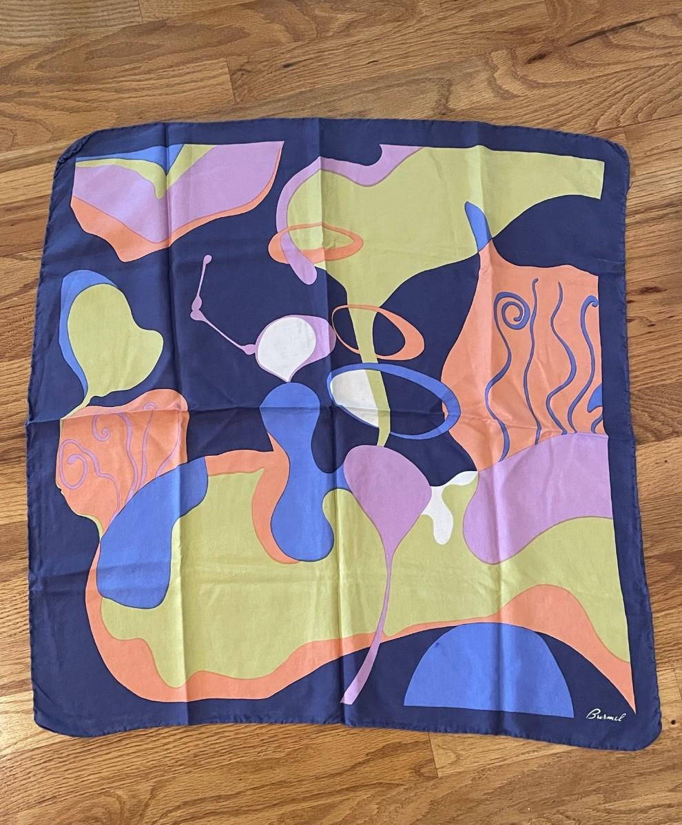 This beautiful scarf is about 26 inches square and in excellent condition.