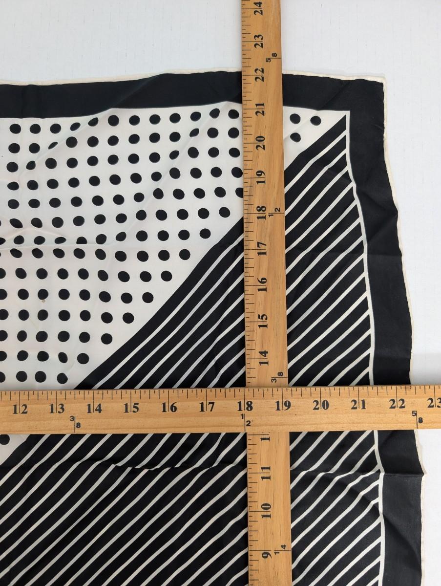 Vintage Burmel Silk Scarf Black White Polka Dot and Stripe Geometric Hand Rolled Hem
