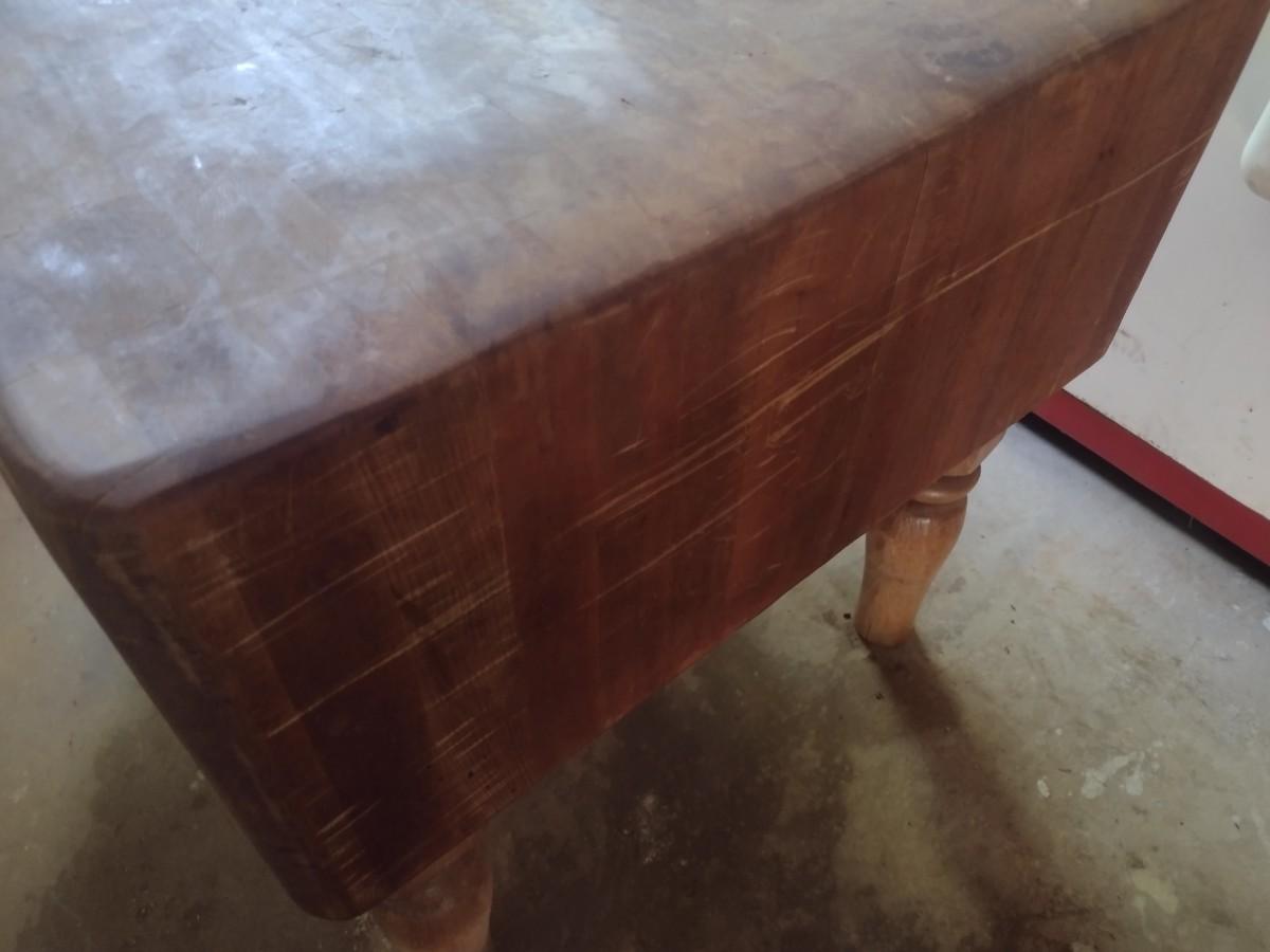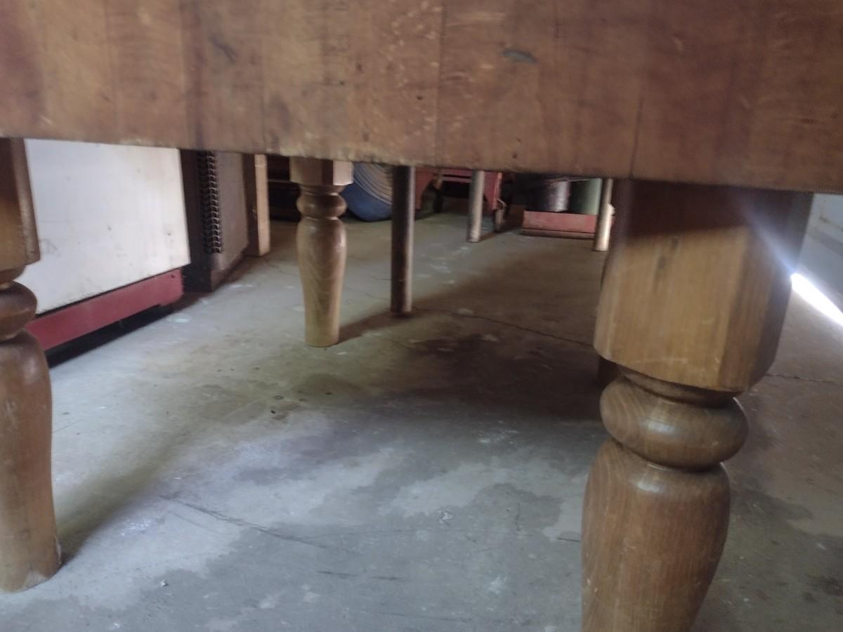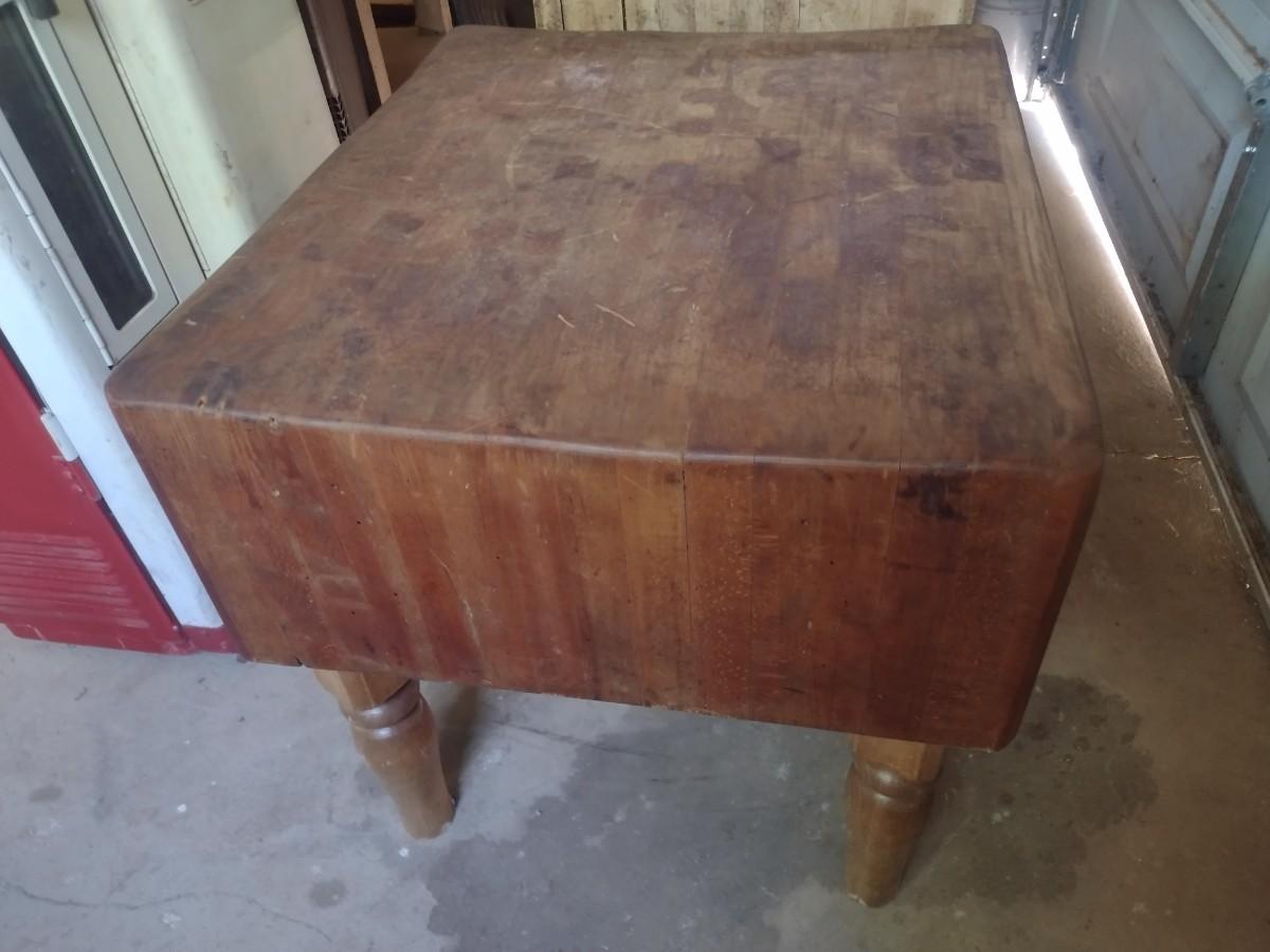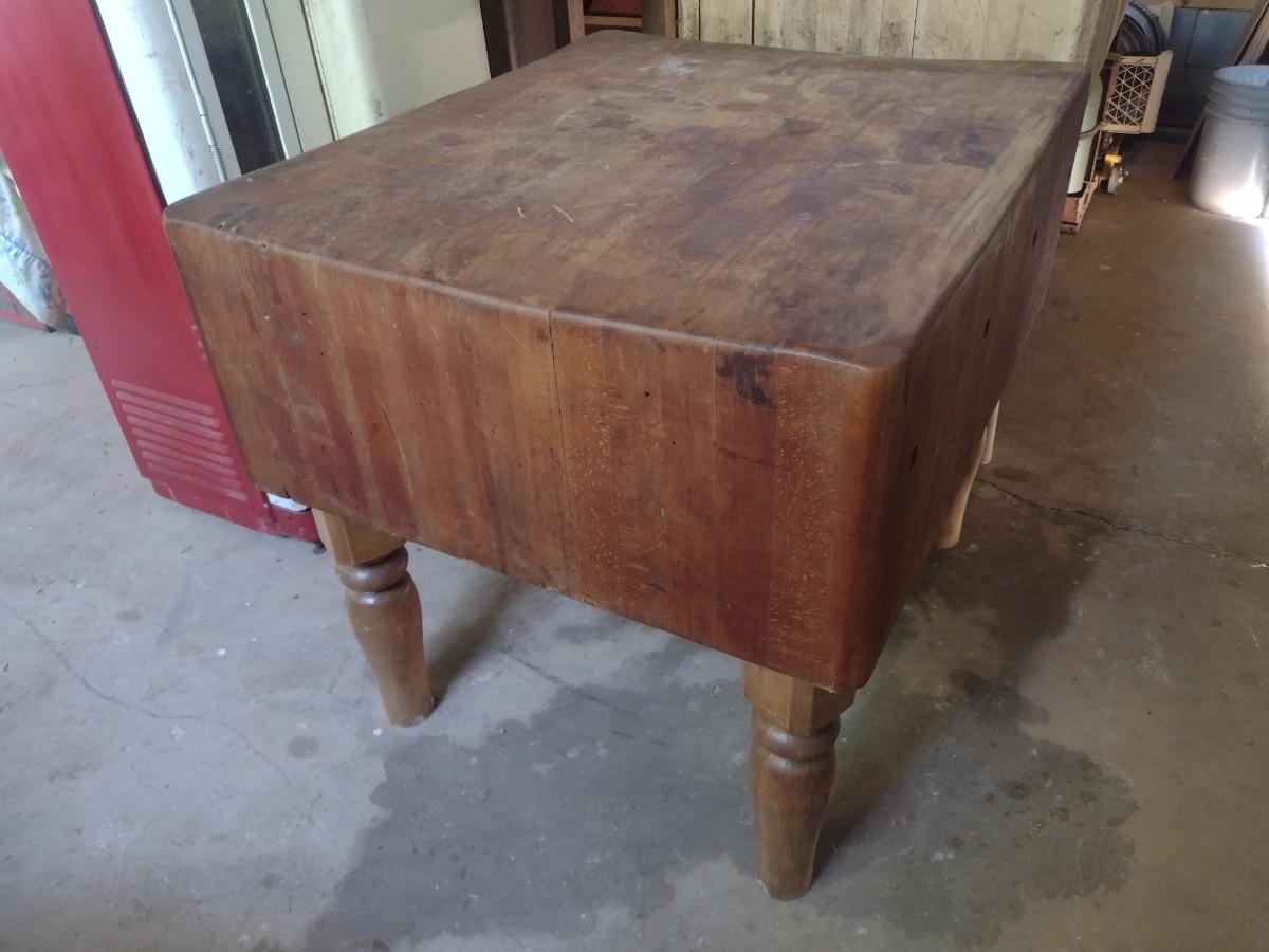 Vintage Butcher Block Table 10" Thick x 36" Long. There is a tractor with forks that will be available for lifting this item onto a trailer if needed. No other lifting assistance is available.