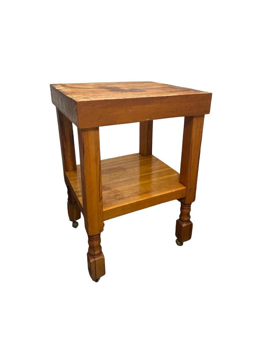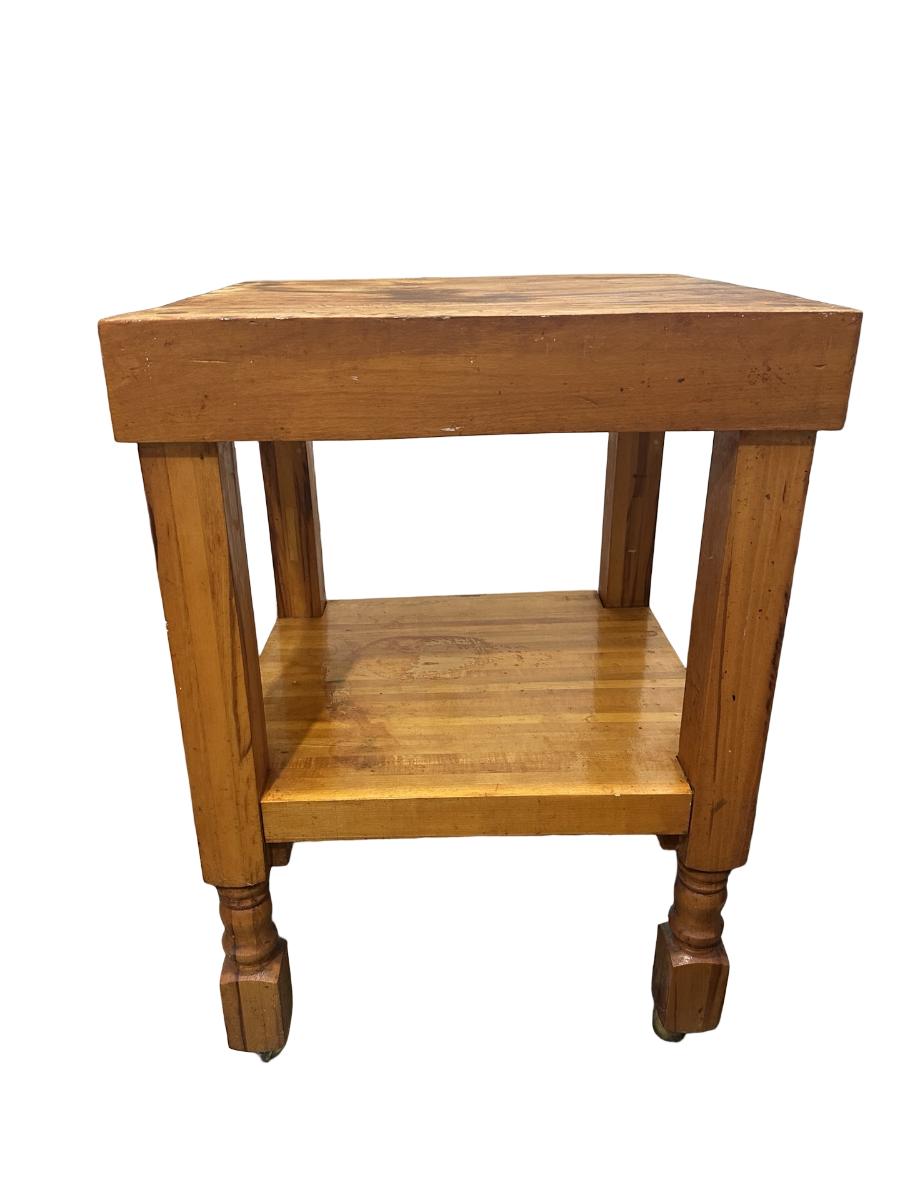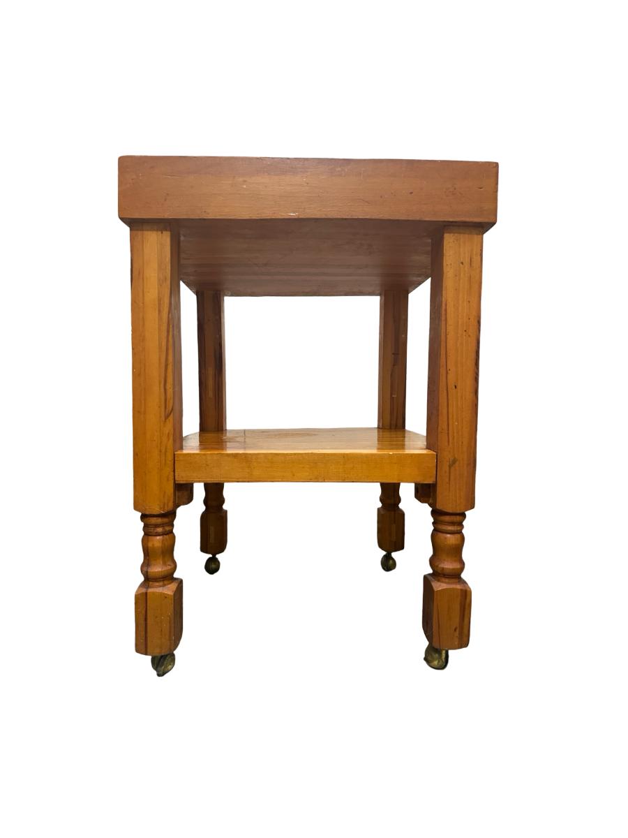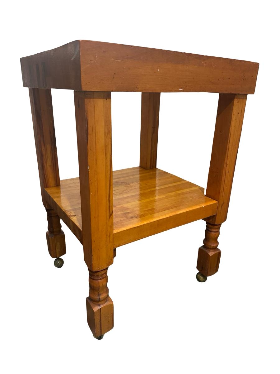 Vintage Butcher Block–Style Table on Brass Casters