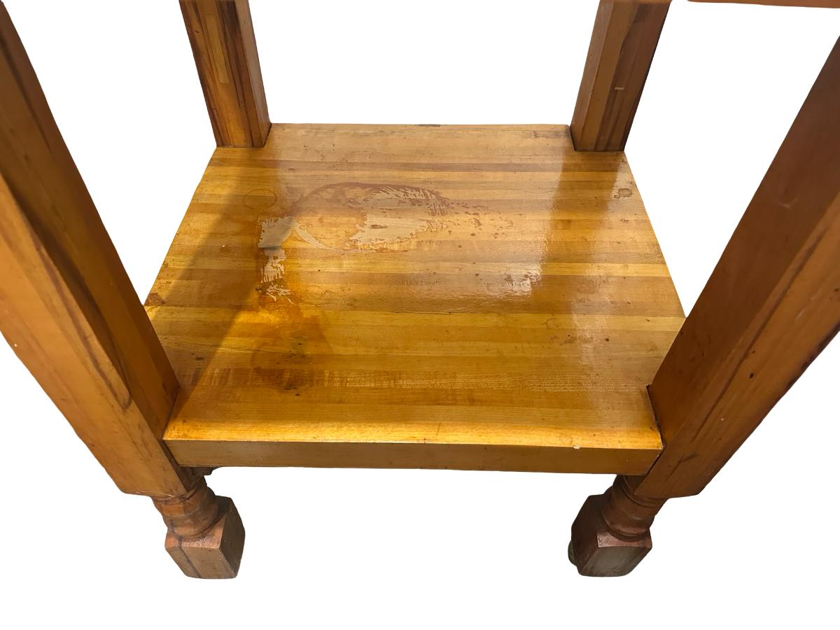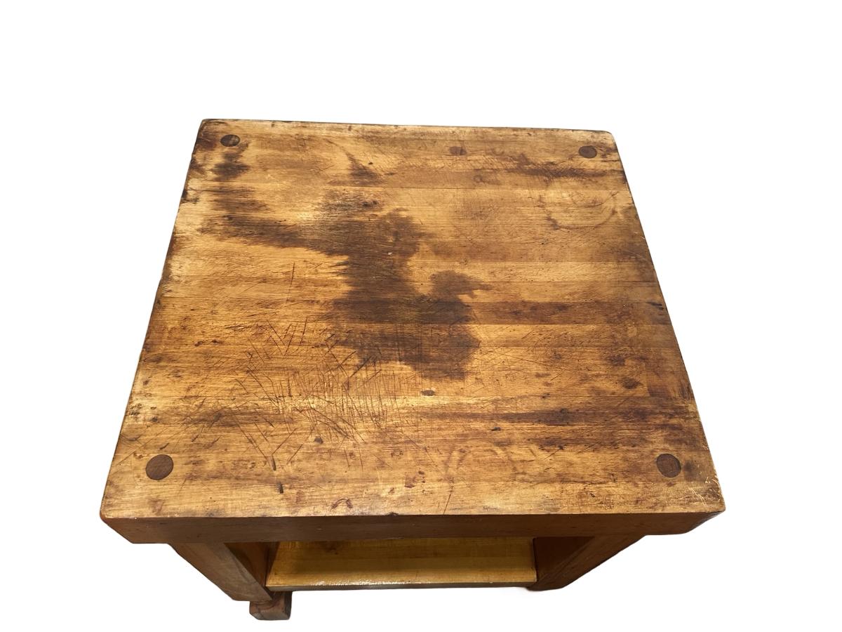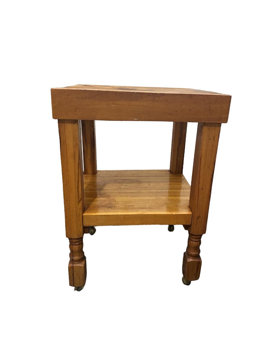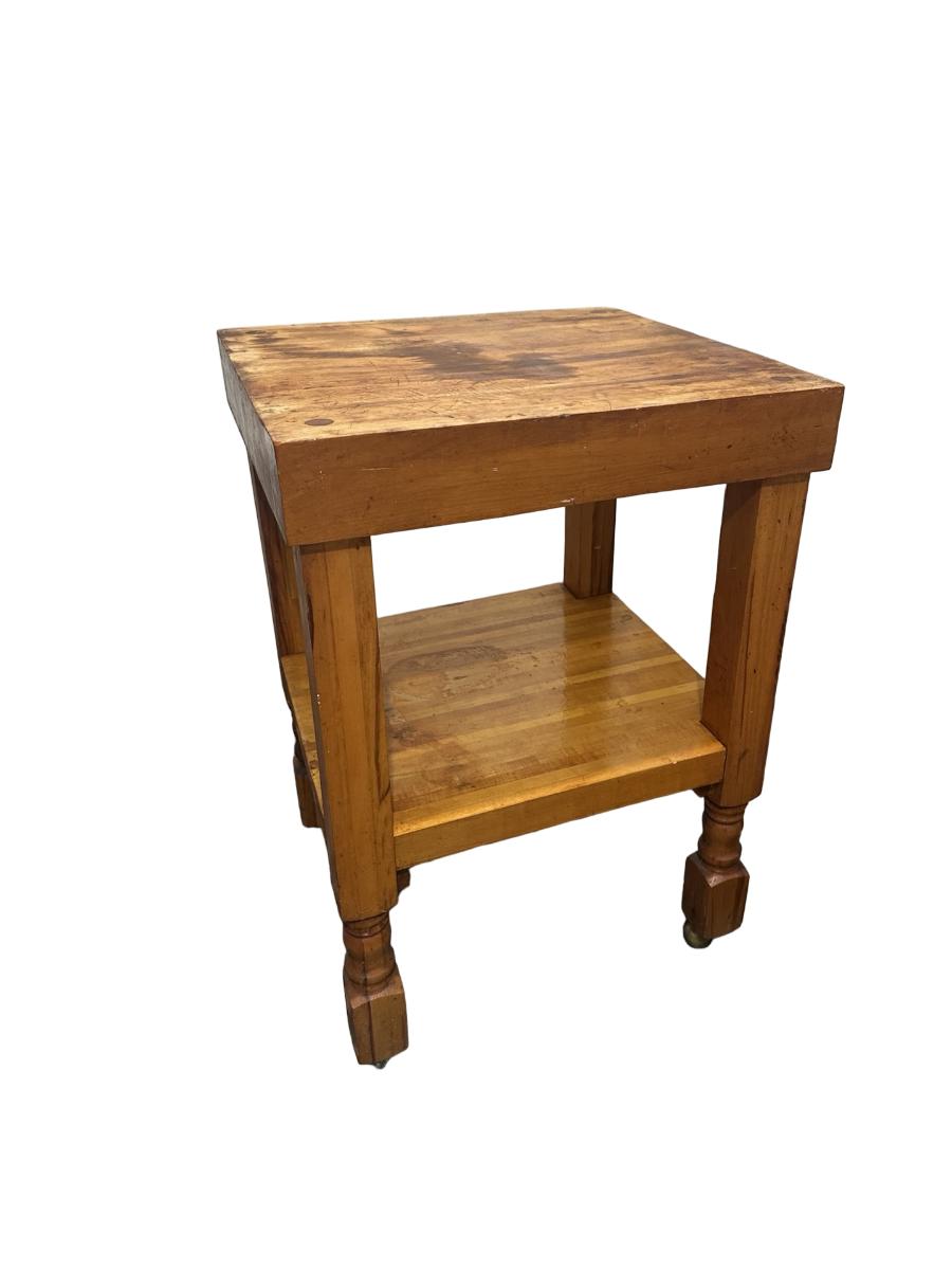 Vintage Butcher Block–Style Table on Brass Casters