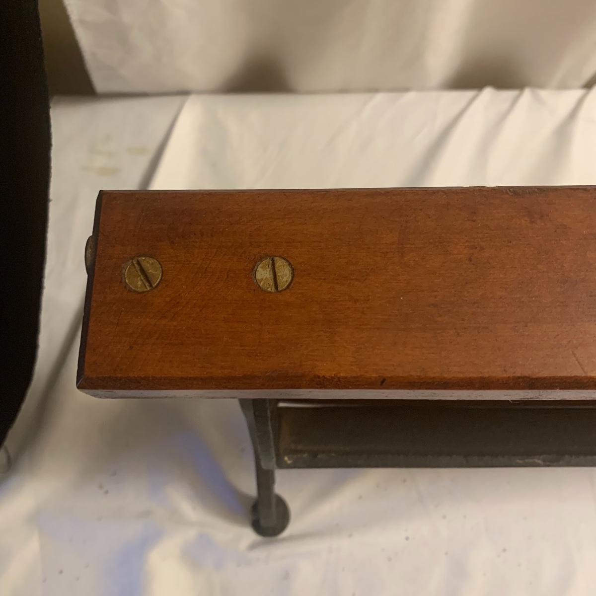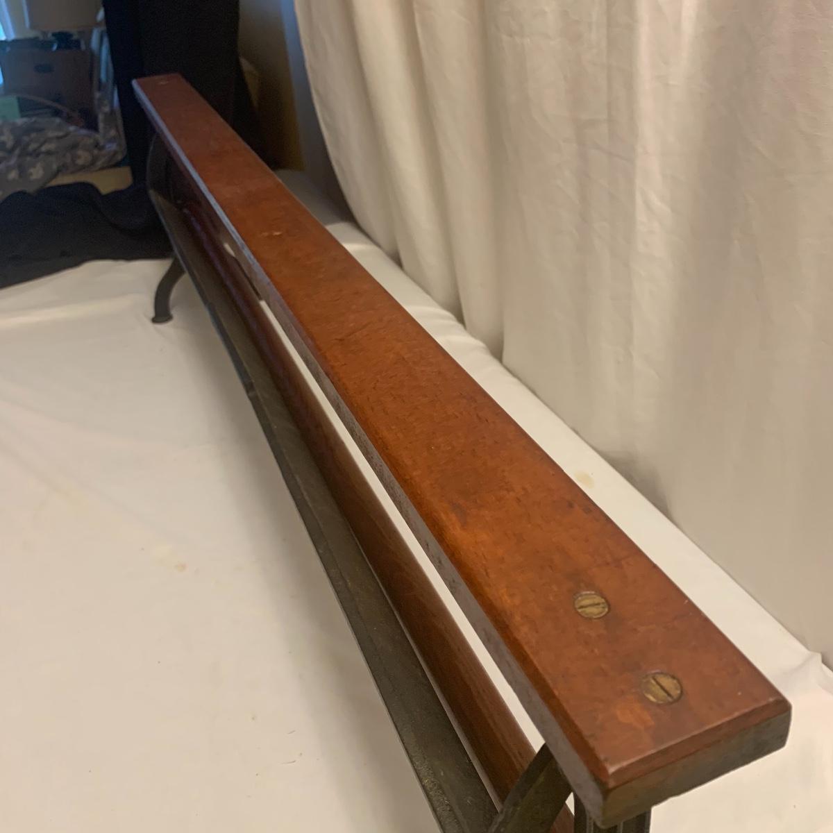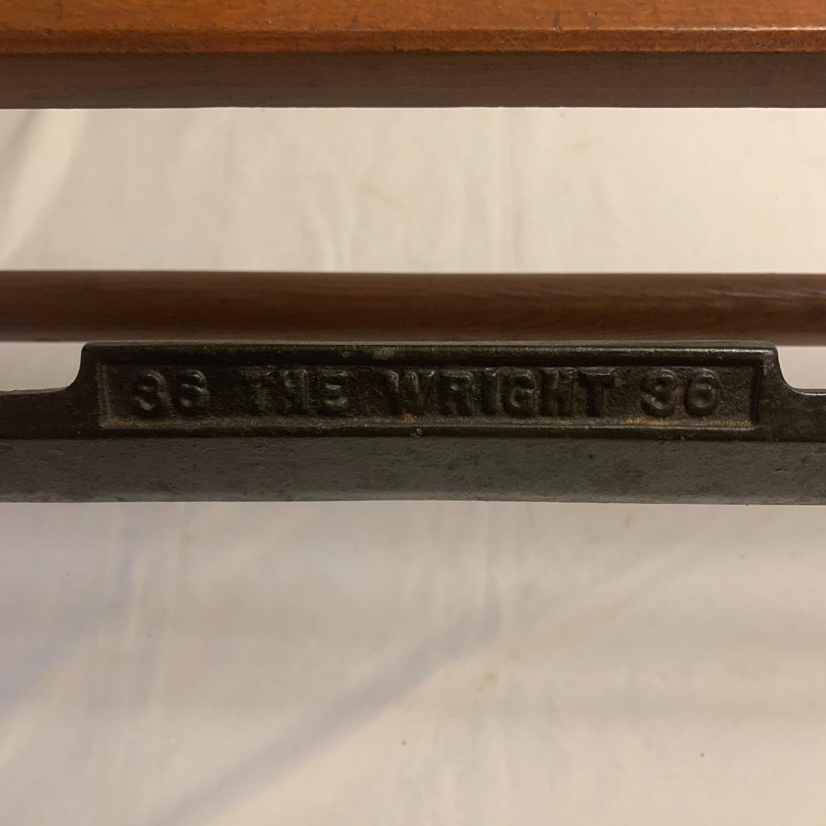 This vintage butcher paper dispenser measures 40” X 12” tall. It was made to dispense a 36” roll paper. The front is marked “36 The Wright”. This item is made of wood and iron and is in great condition.