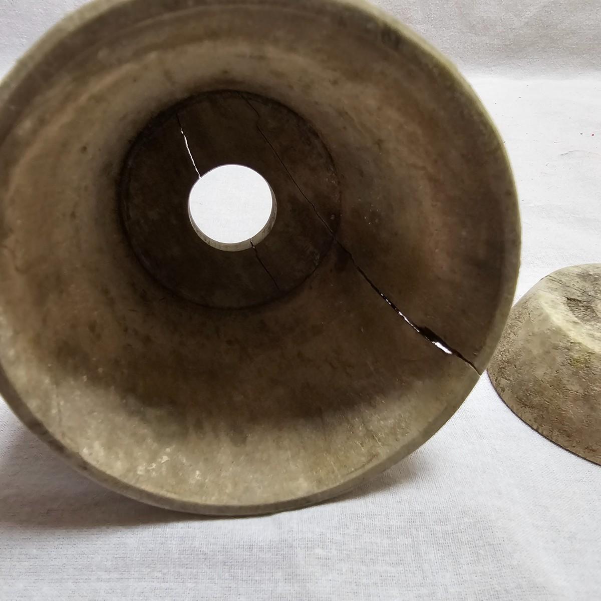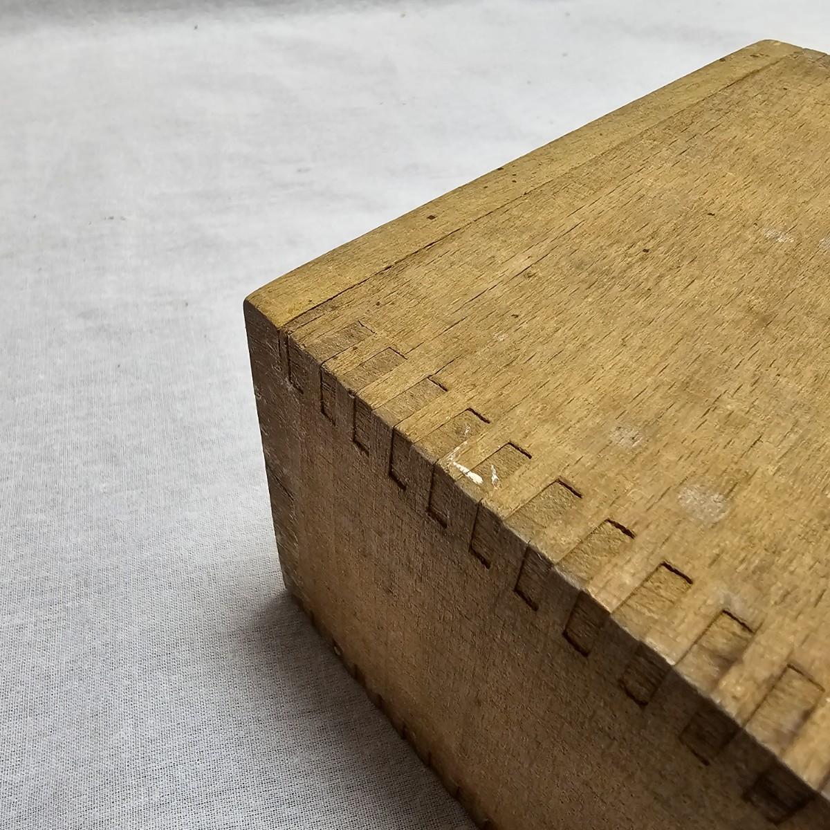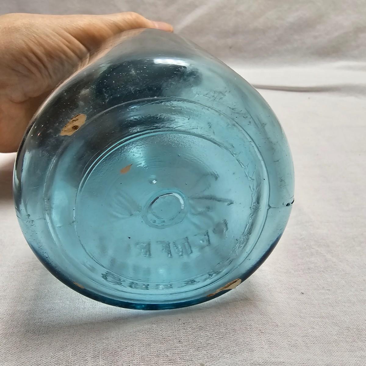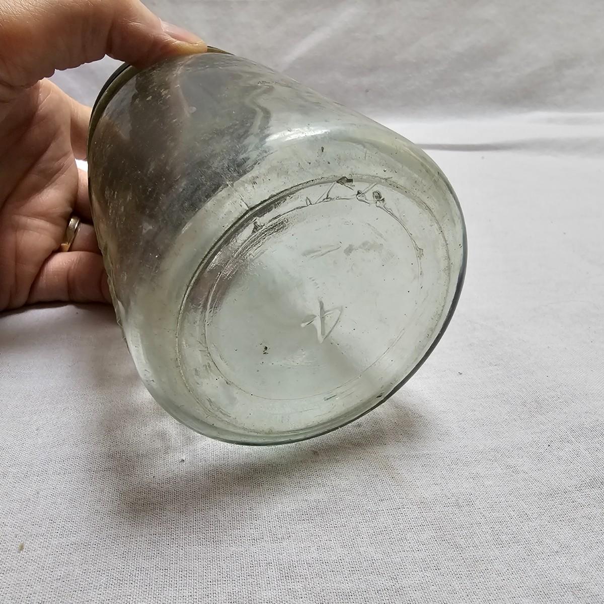 Three wooden butter molds and three canning jars. Two jars by Ball, one clear, one blue. One jar by Root, 4.5" D x 9"H. Two round butter molds, 4"D x 4"H. Carved imprint in bottom of mold piece; one mold has loose handle. Rectangular mold has lapped joints, is 3.5" x 3.25" x 3.5"H. Plain bottom, no design. Some cracks in the wood; see photos for details. Shipping available.
