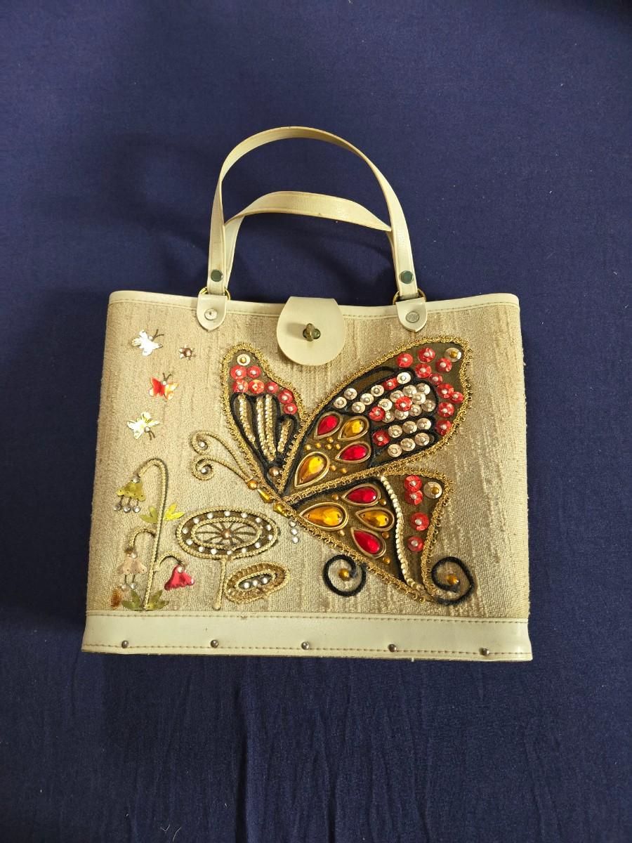Vintage Butterfly Beaded Edith Collins Style Purse