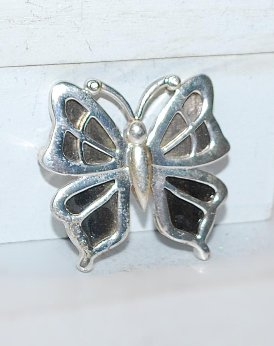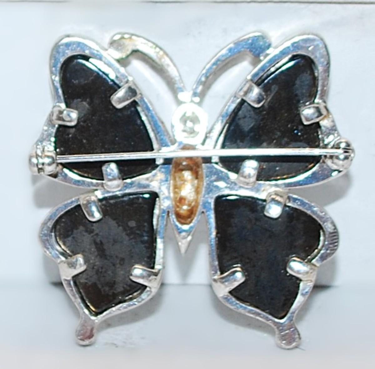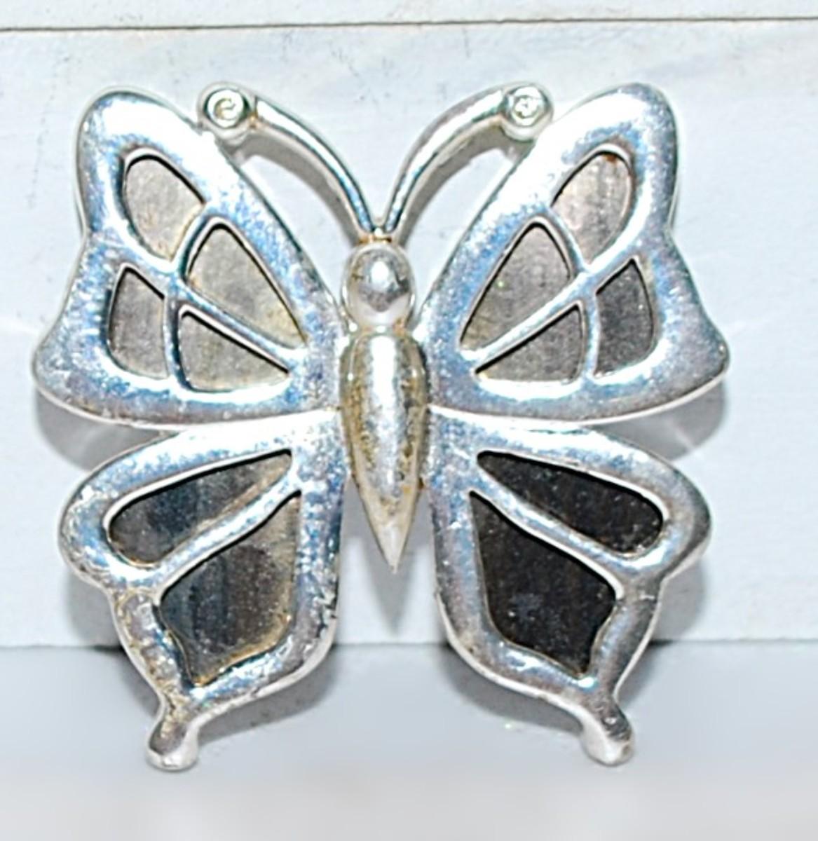 VINTAGE BUTTERFLY BROOCH (1¾" x 1¾") with Black "SLATE" Inserts on a Silver Tone Setting