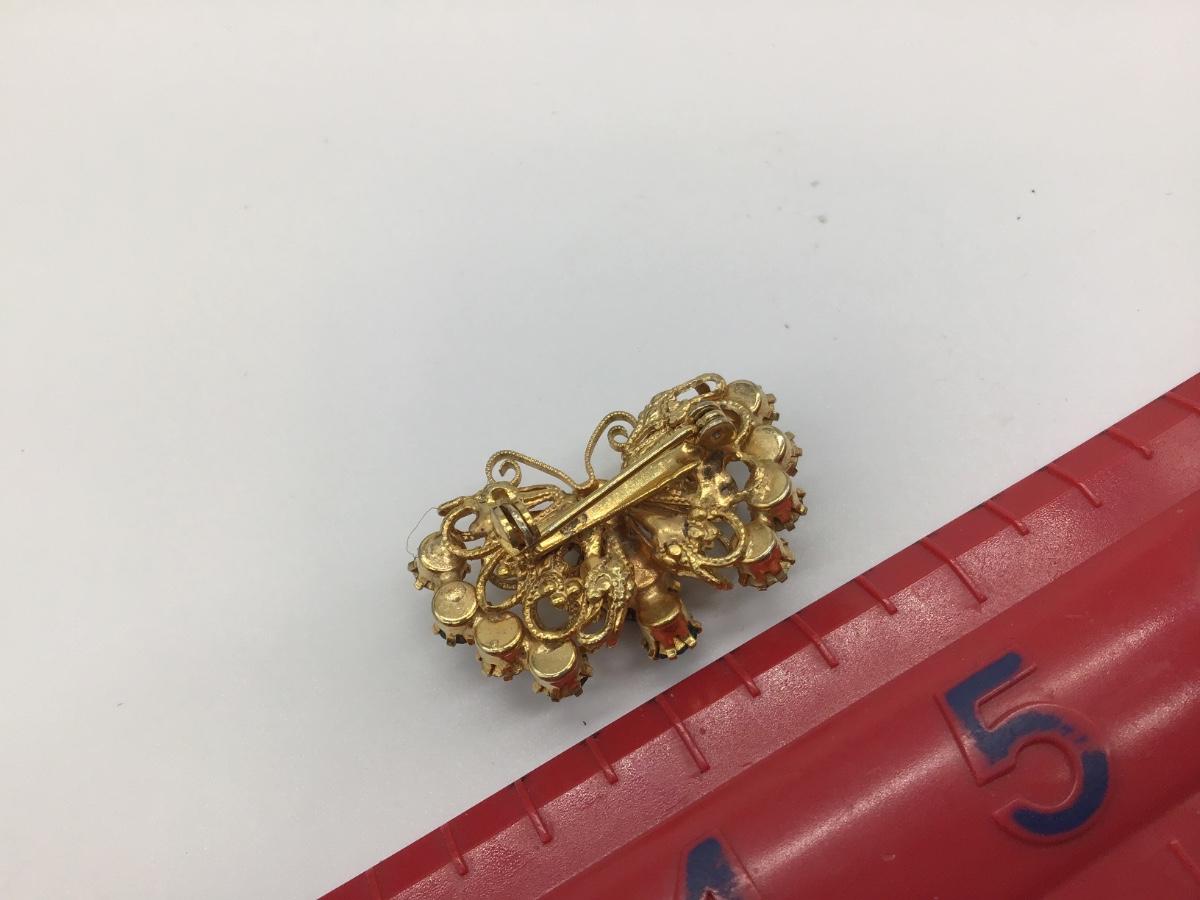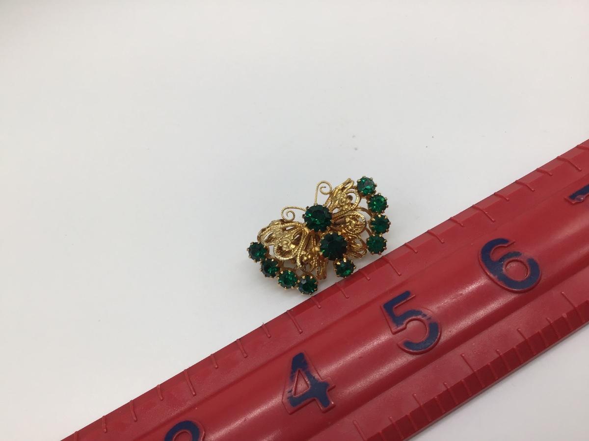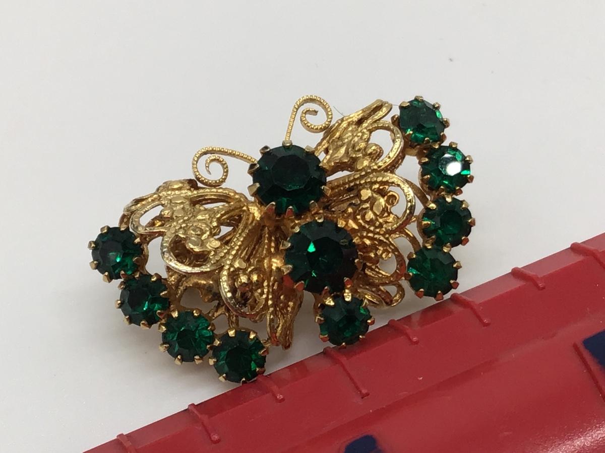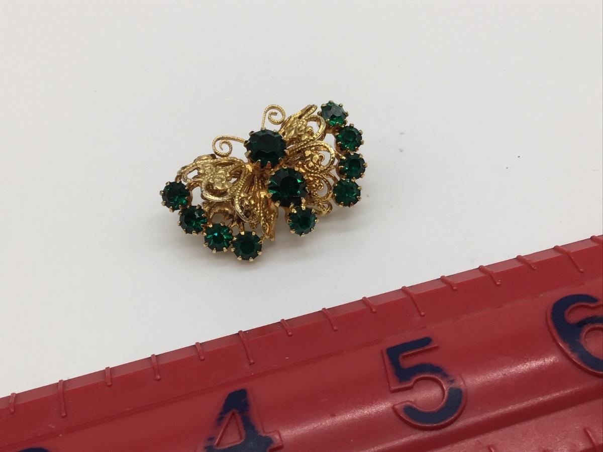 Vintage Butterfly Brooch with Beautiful Green Rhinestone