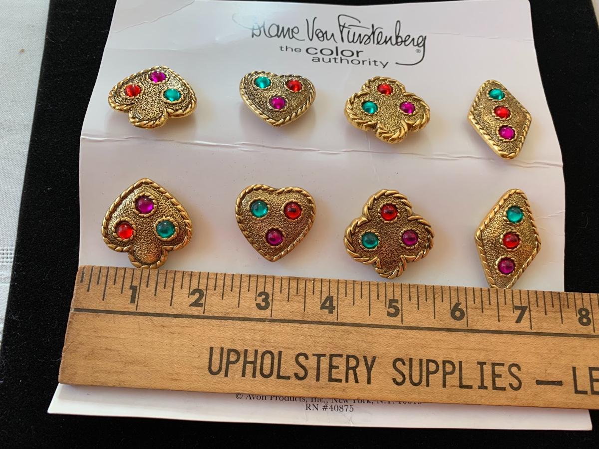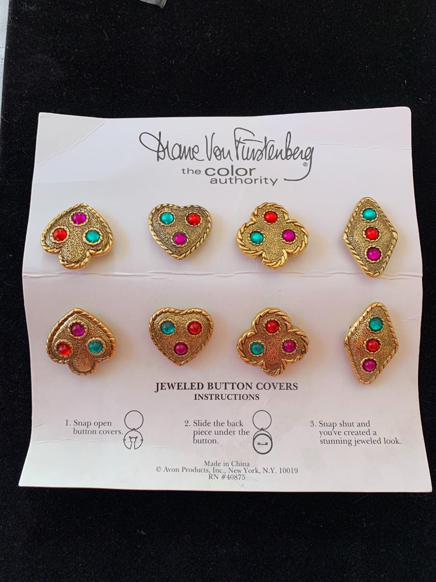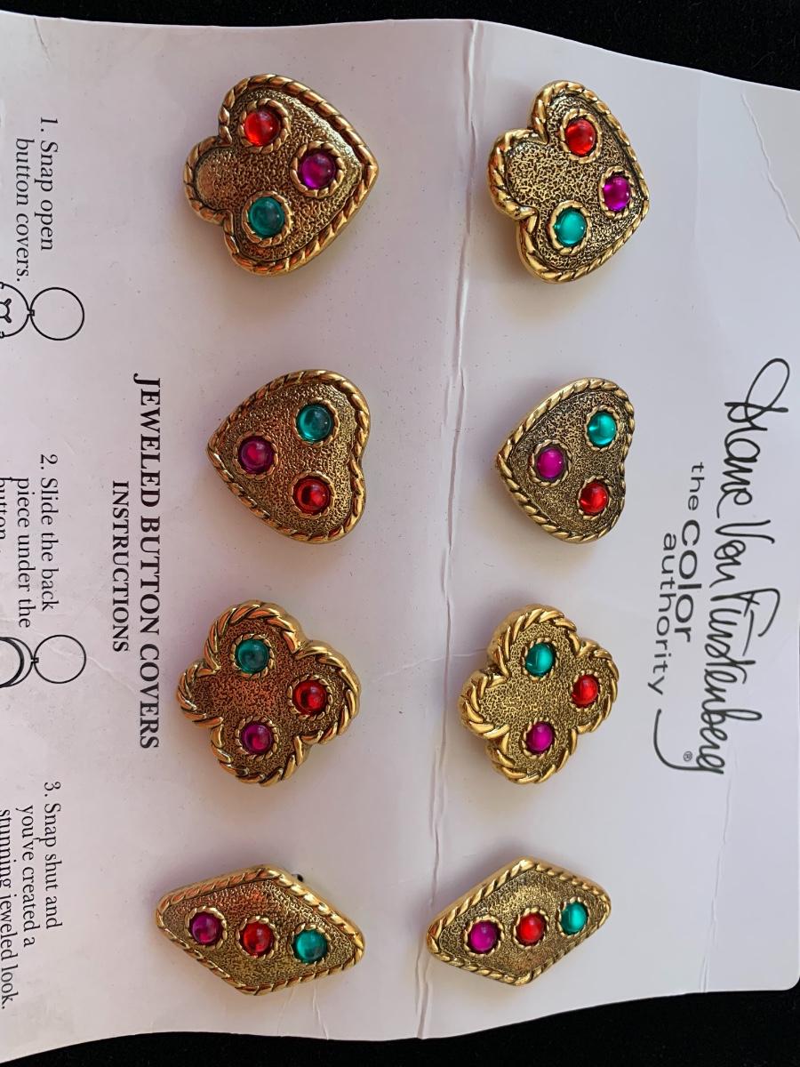 Vintage Button Covers Designer Diane Von Furstenburg, set of 8 in original packaging