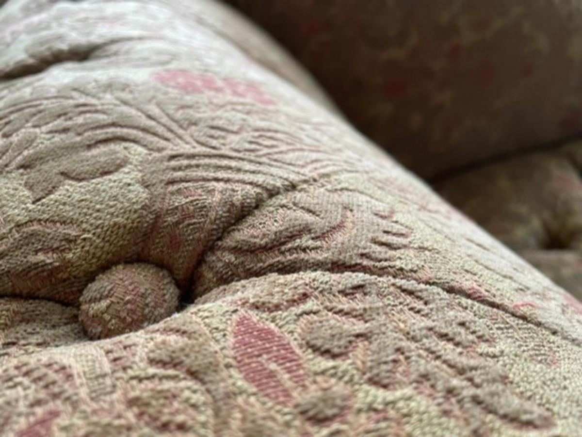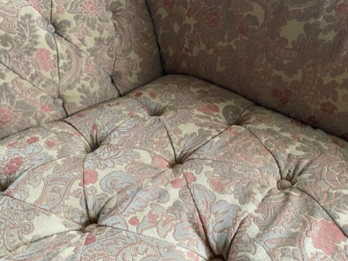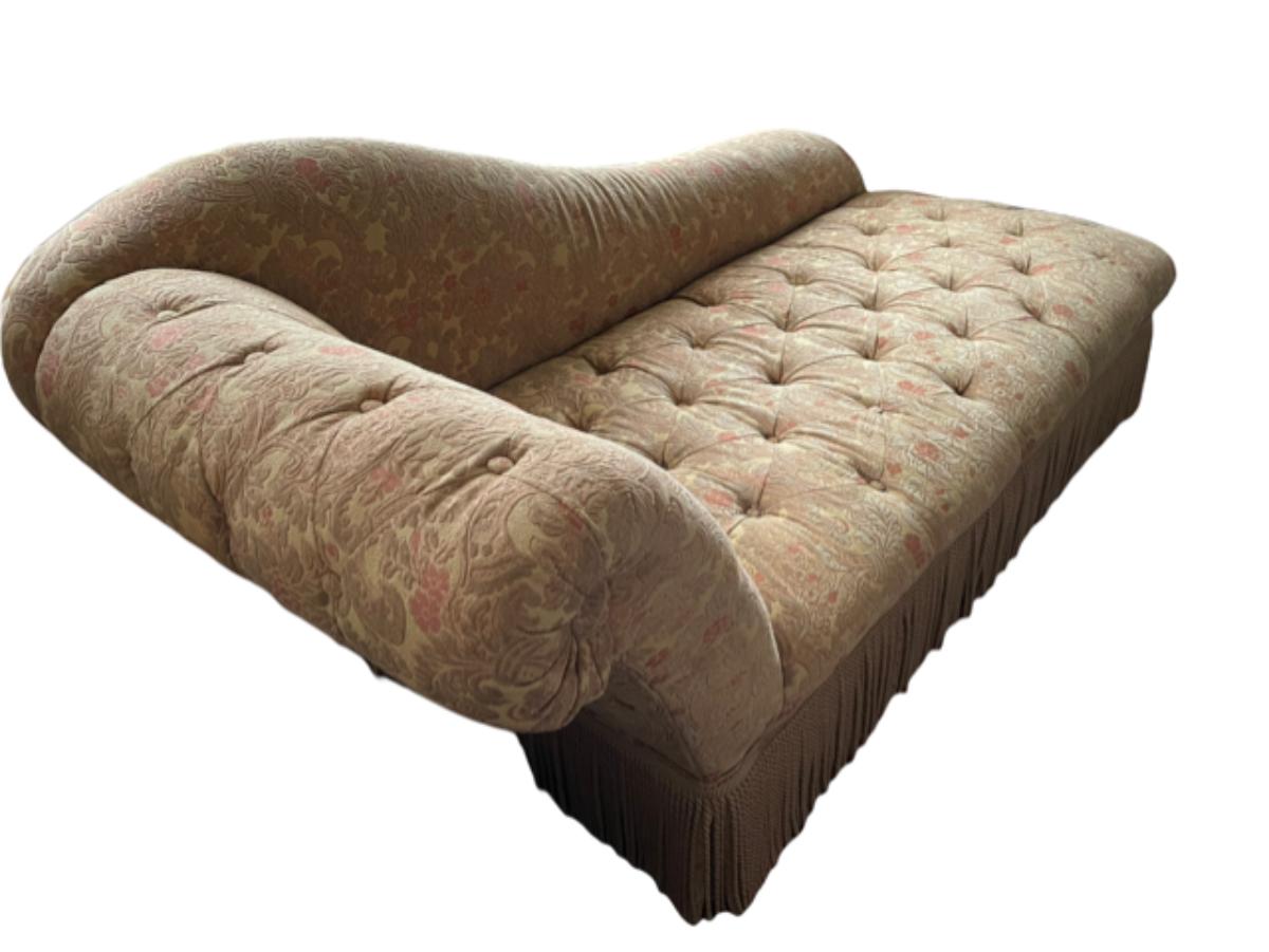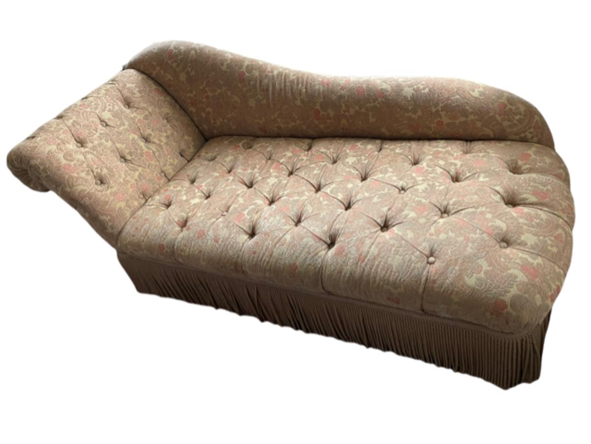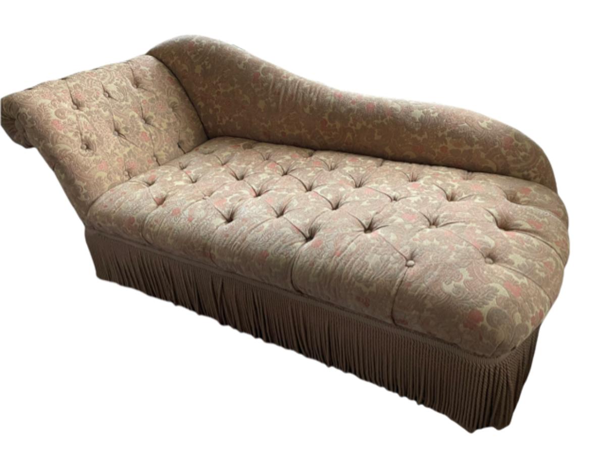Vintage Buttoned Floral Print Fabric Fainting Couch / Chaise Lounge - PY11657