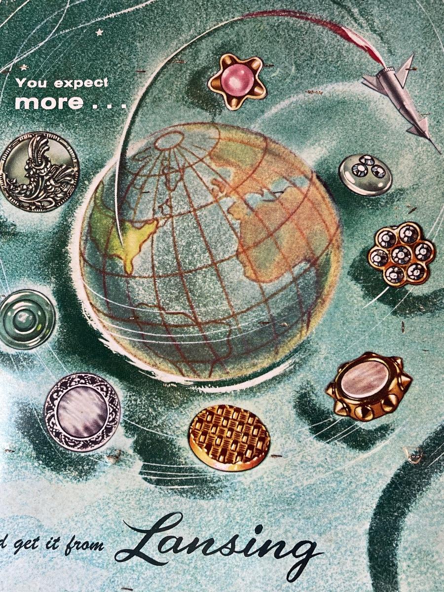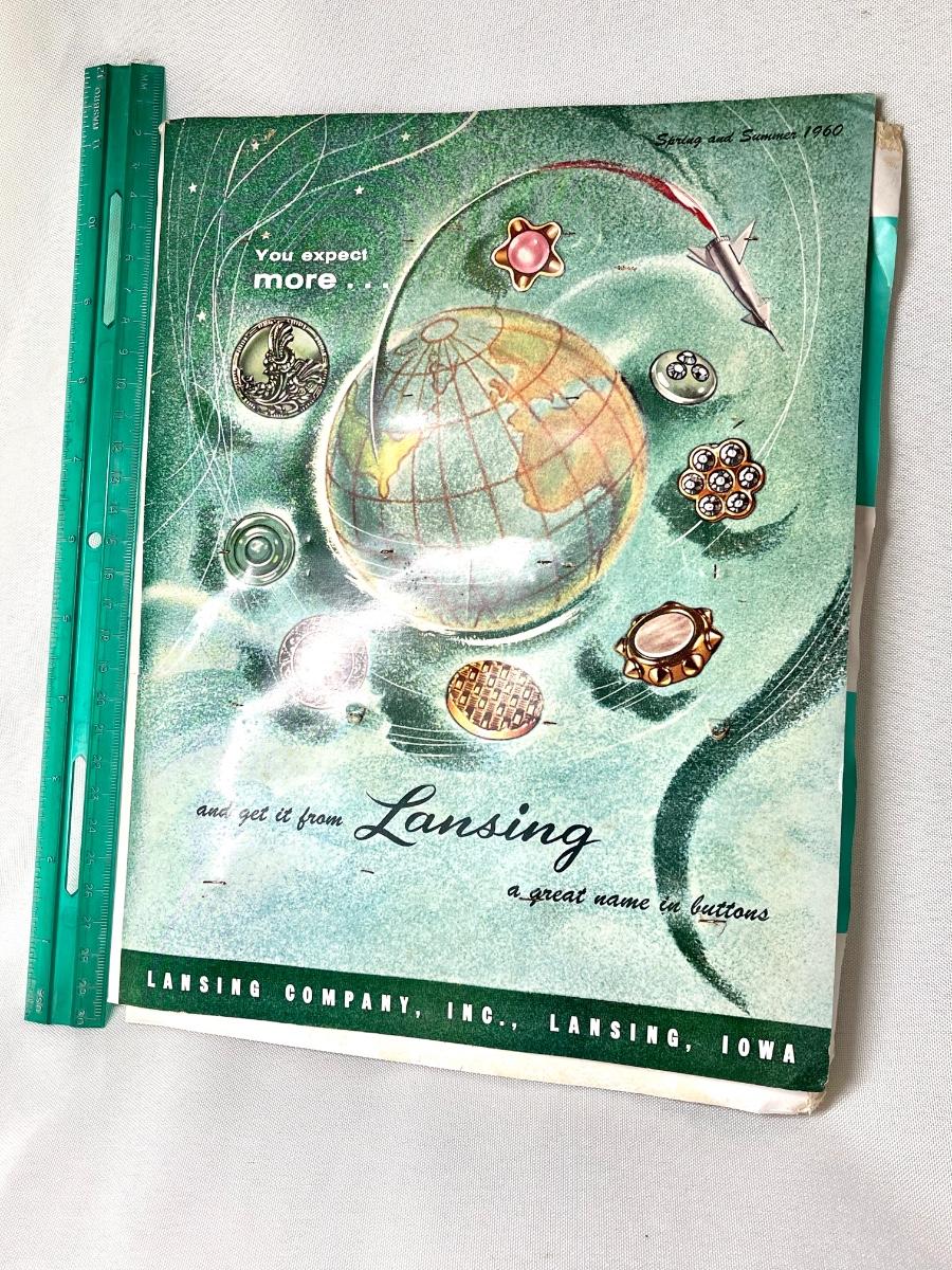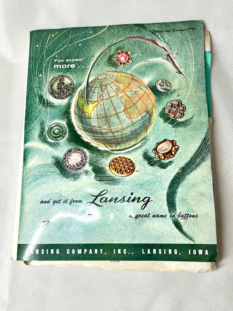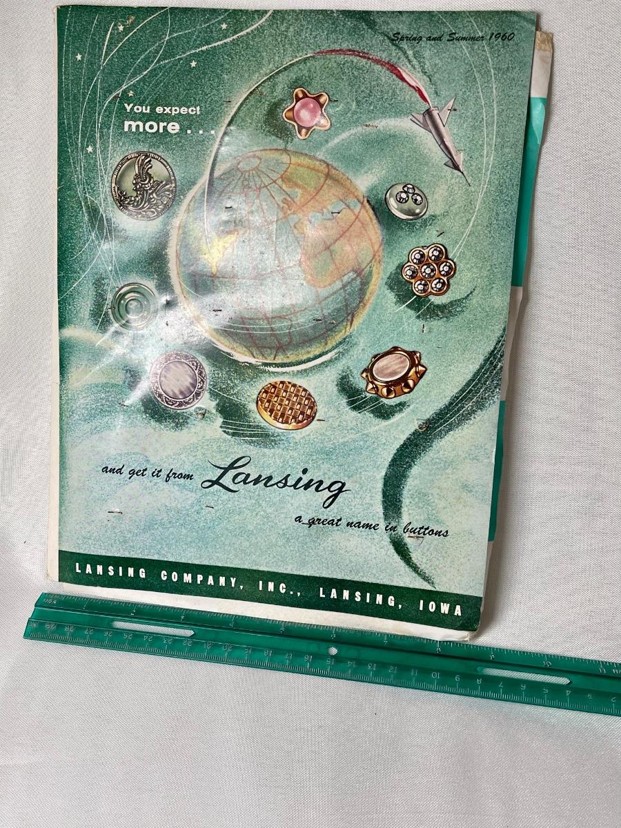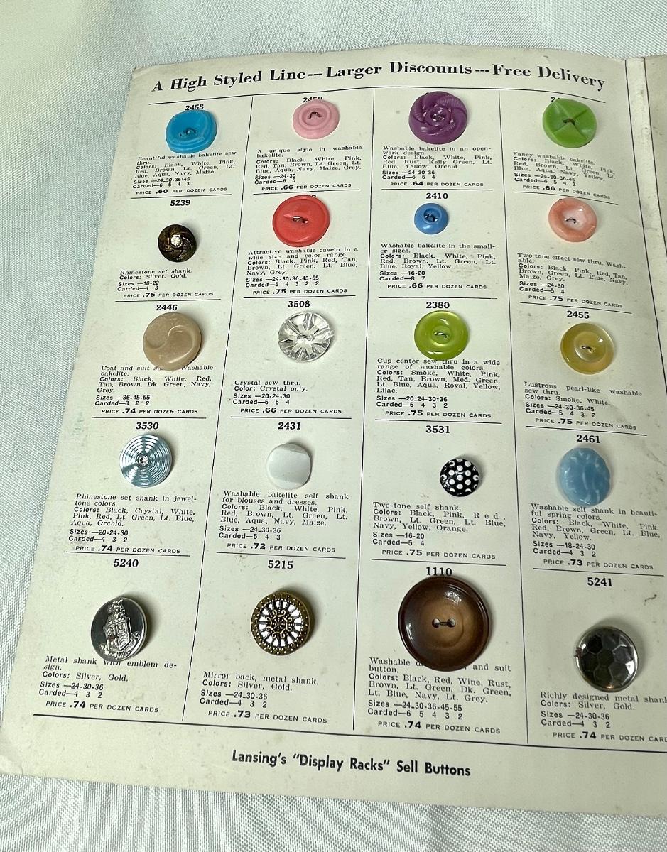 What a cool piece for a button collector! This shows a myriad of buttons you could Oder during the 1950s. Any button collector would love this. There is discoloration and some dirt and dust covering the pages. This has been in storage for a long time. I’m sure you could clean it up some. I’ll leave that to the buyer. Cool vintage item for sure!