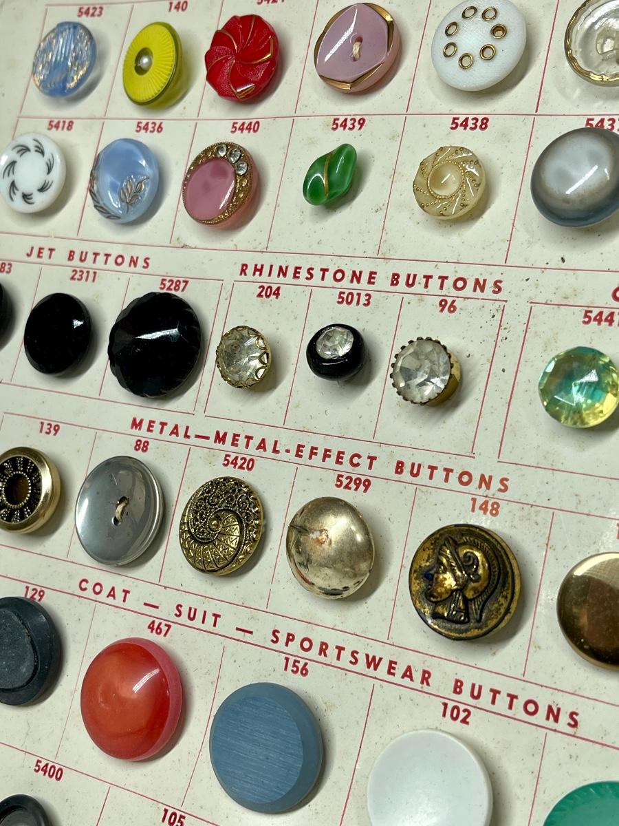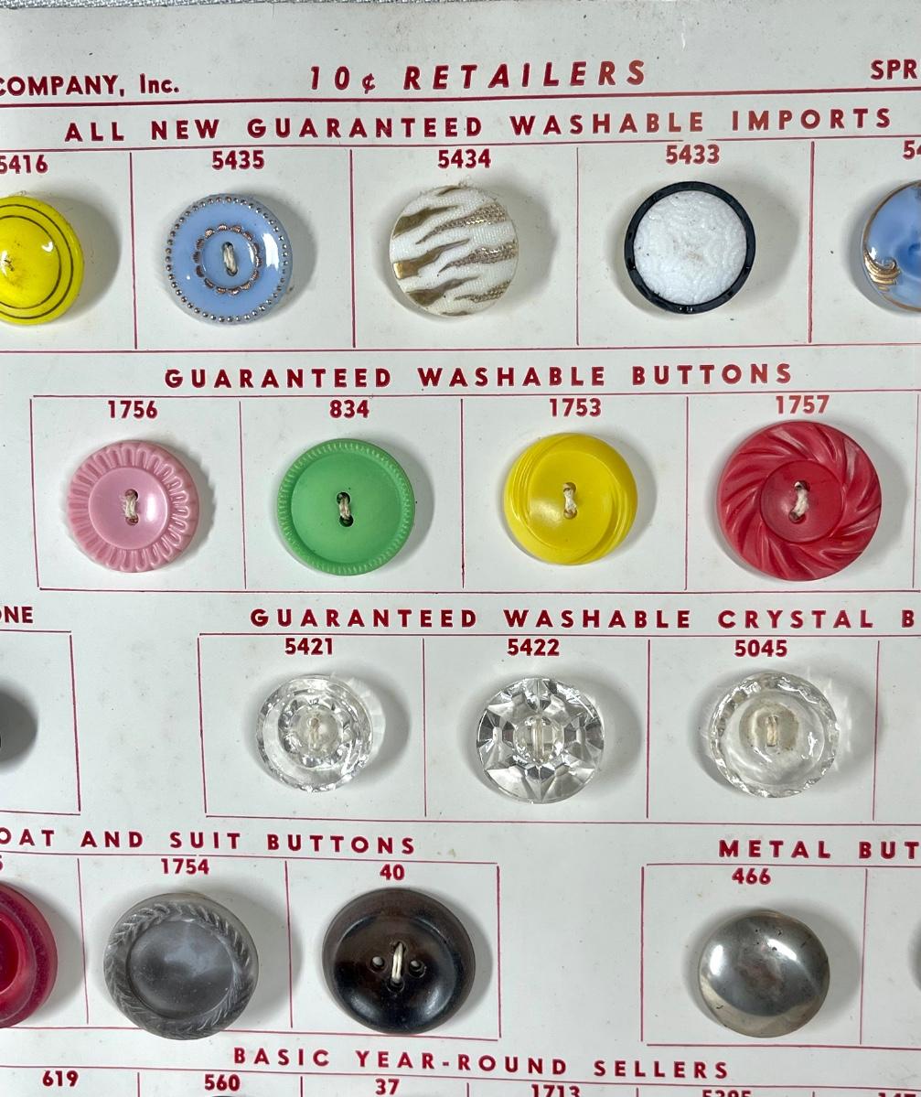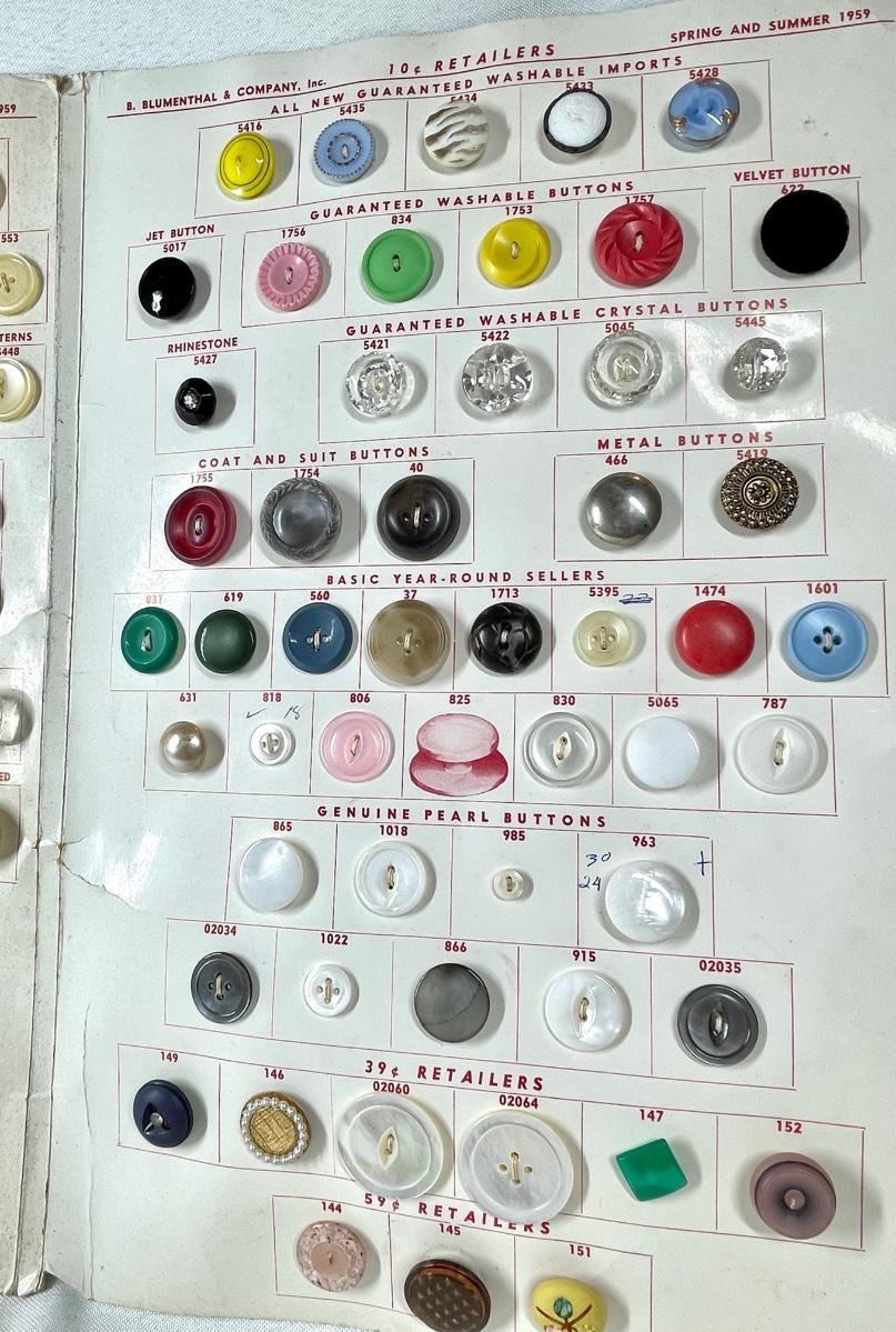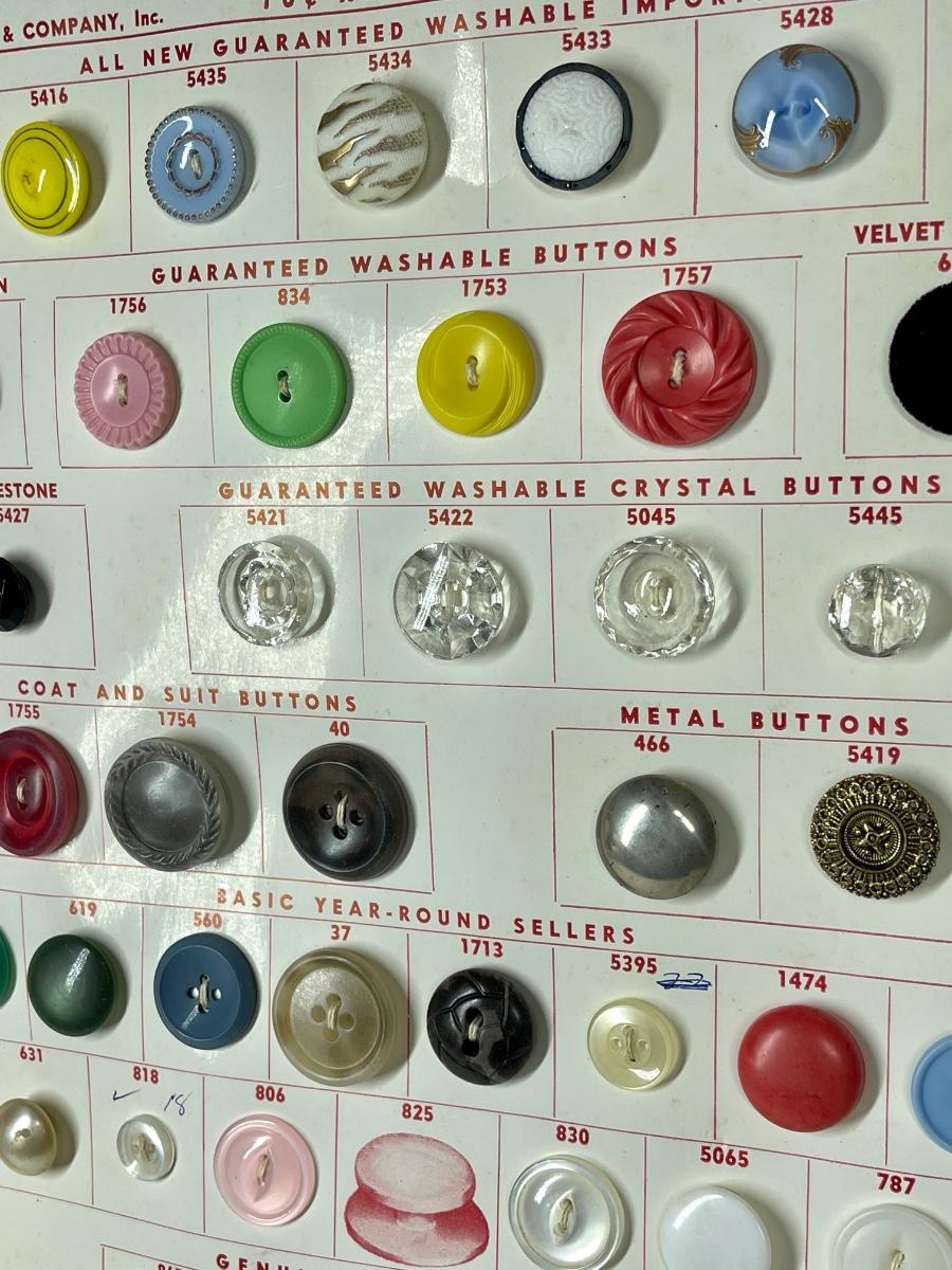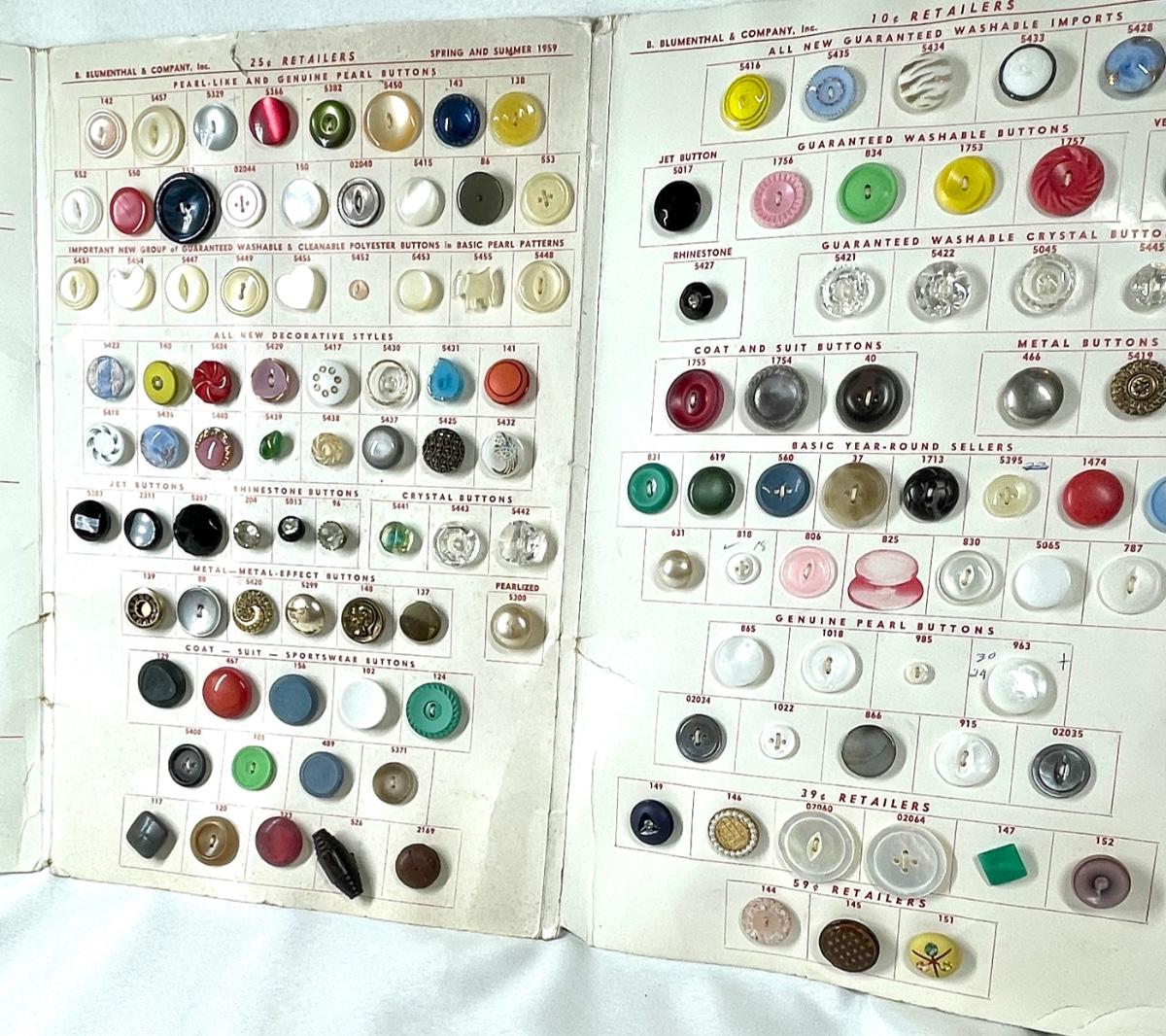 Another great piece for the button collector! The pages/ paper is discolored from age. There is dirt and dust spots present throughout the display. Still very cool indeed!