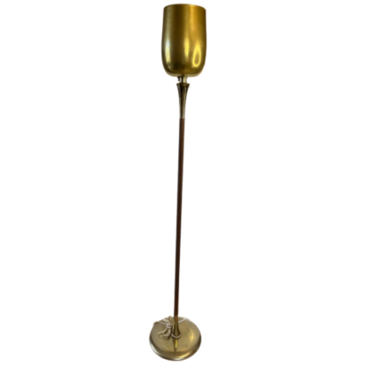 Vintage c 1950s Brass Stemmed Tulip Shade Torchiere with Solid Brass Base