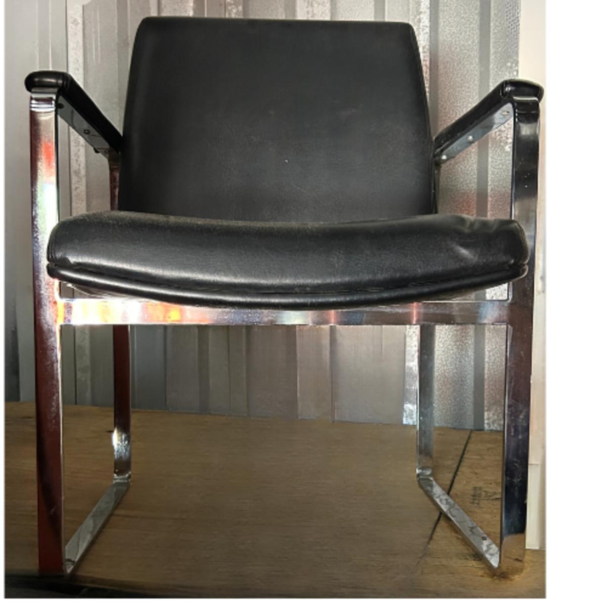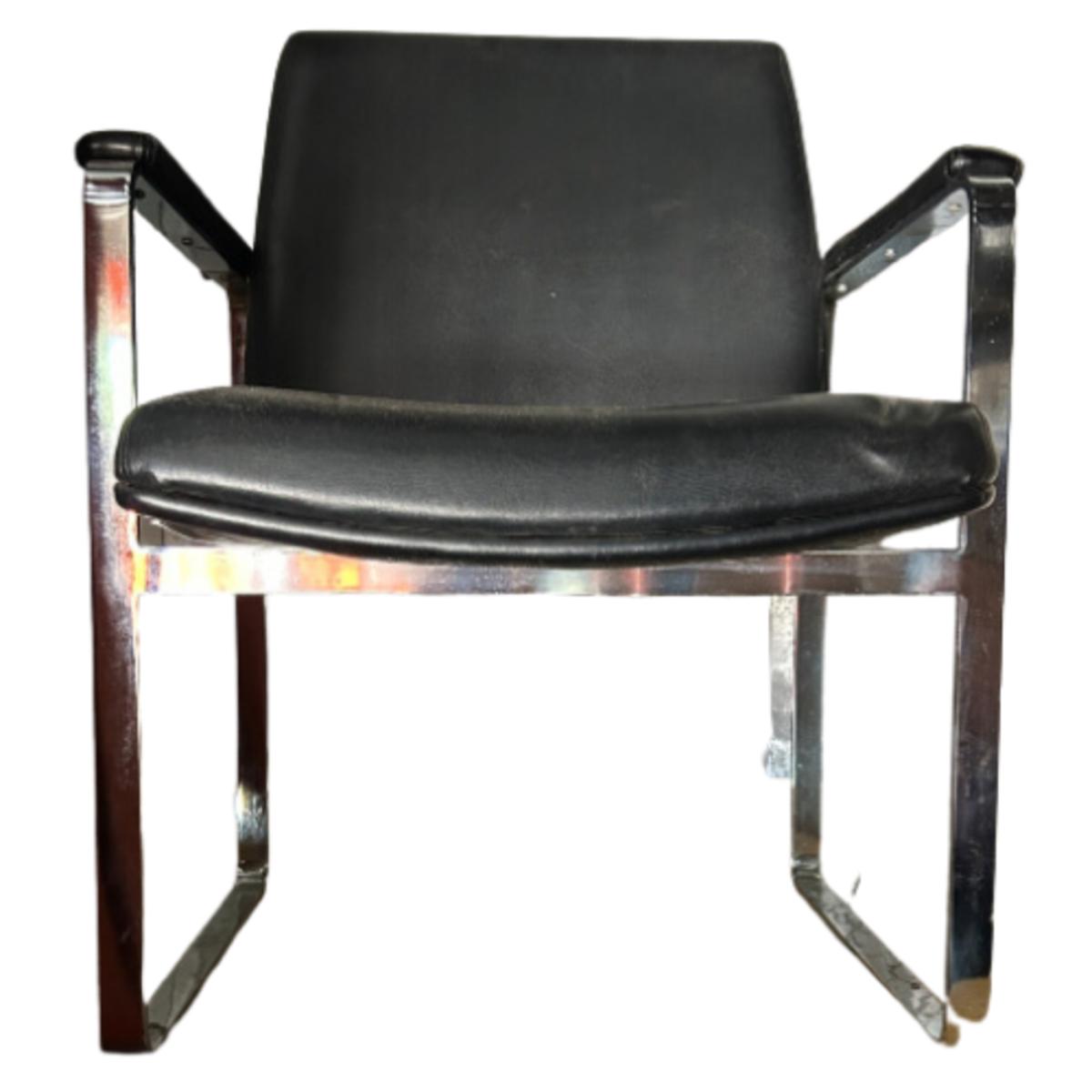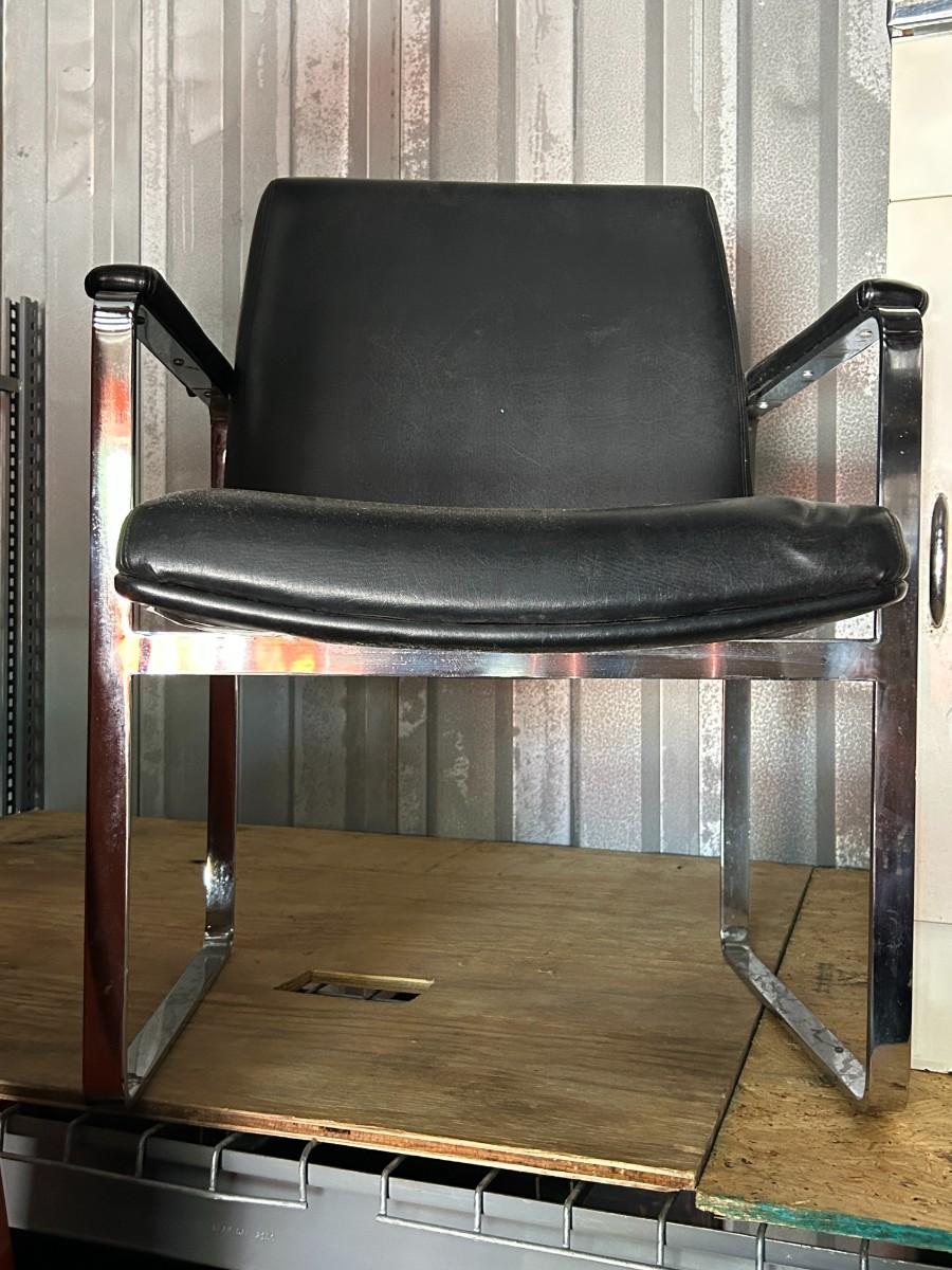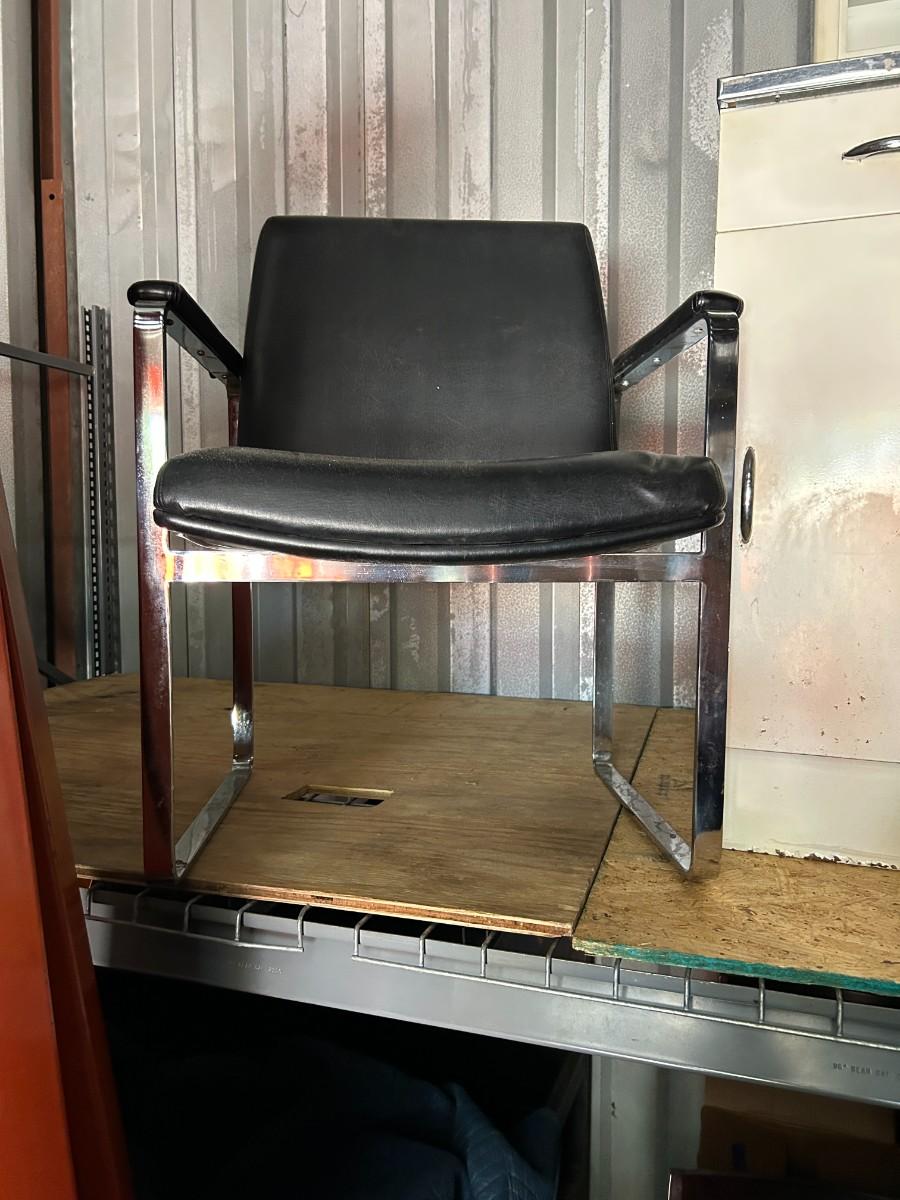 Vintage c.1960s ChromCraft Black Leather Floating Chrome Chair