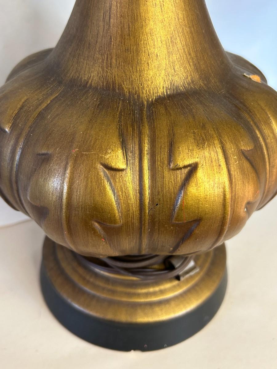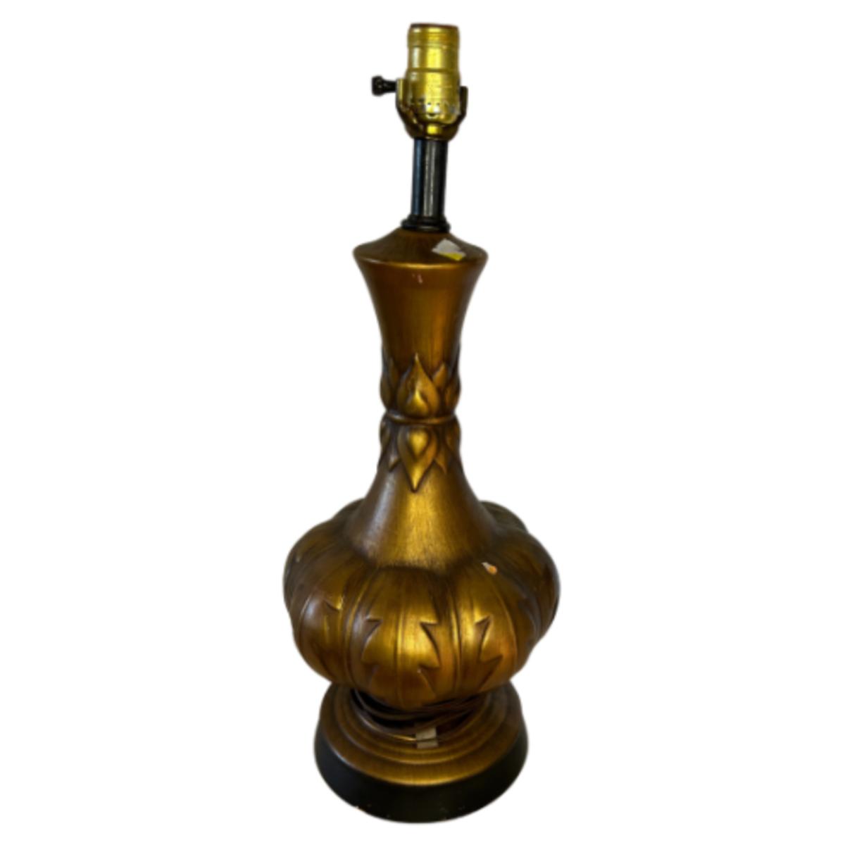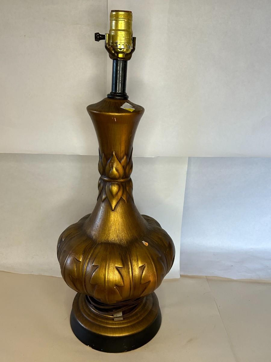 Vintage c.1970s Mid-Century Table Lamp with Metallic Finish & Leaf Pattern