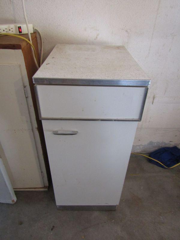 METAL CABINET WITH DRAWER AND FORMICA TOP