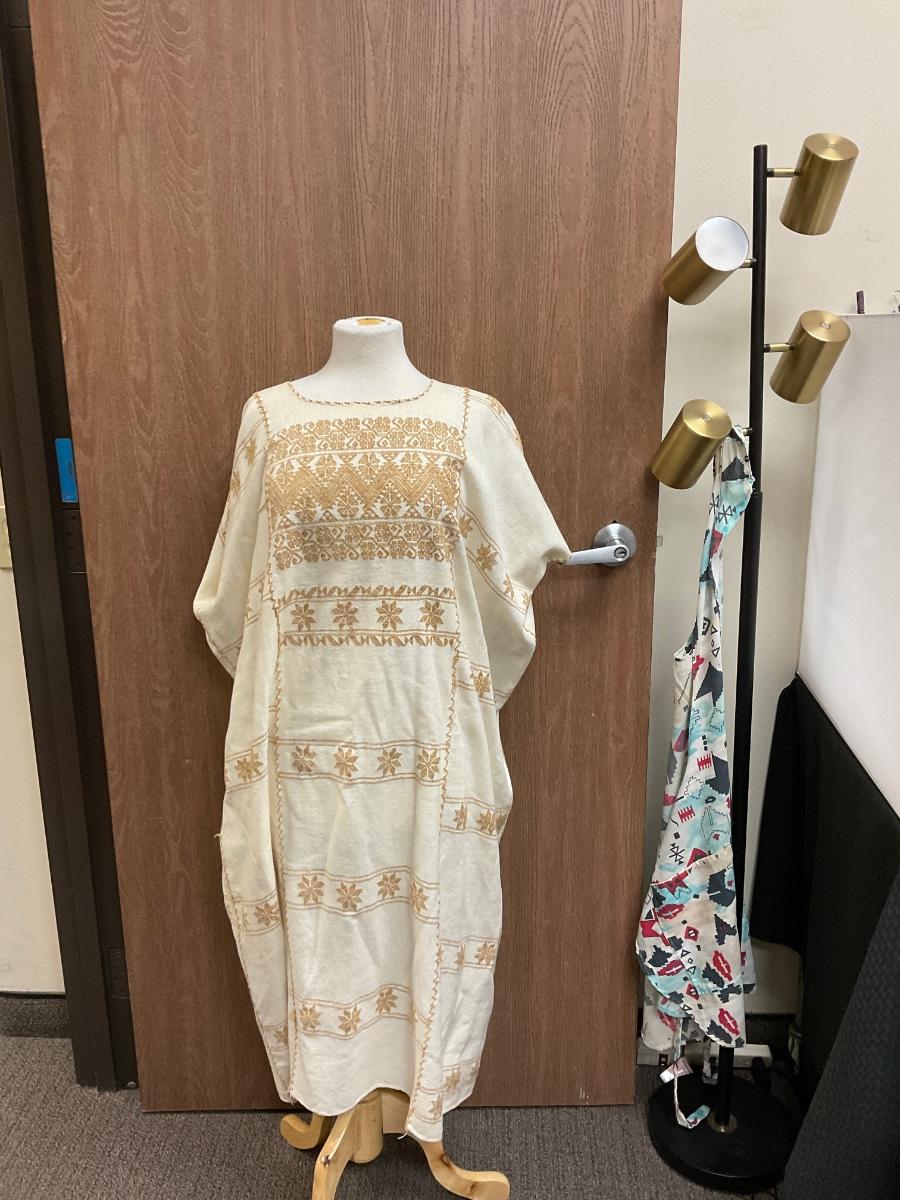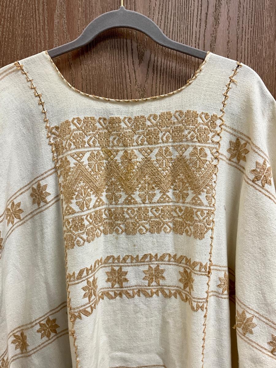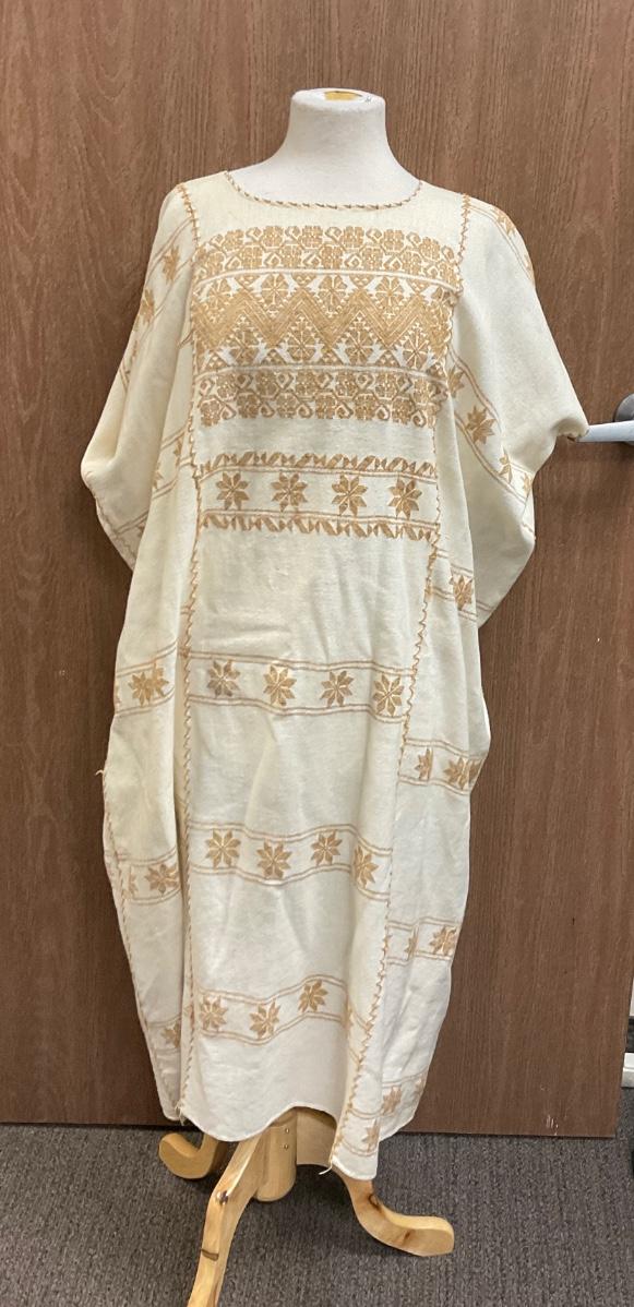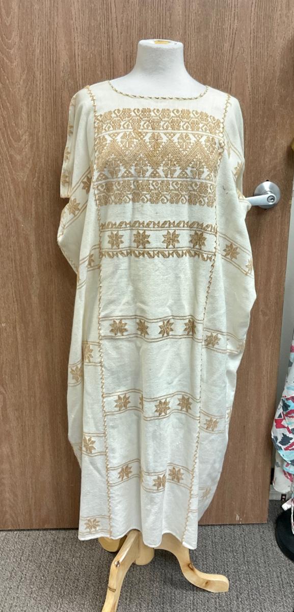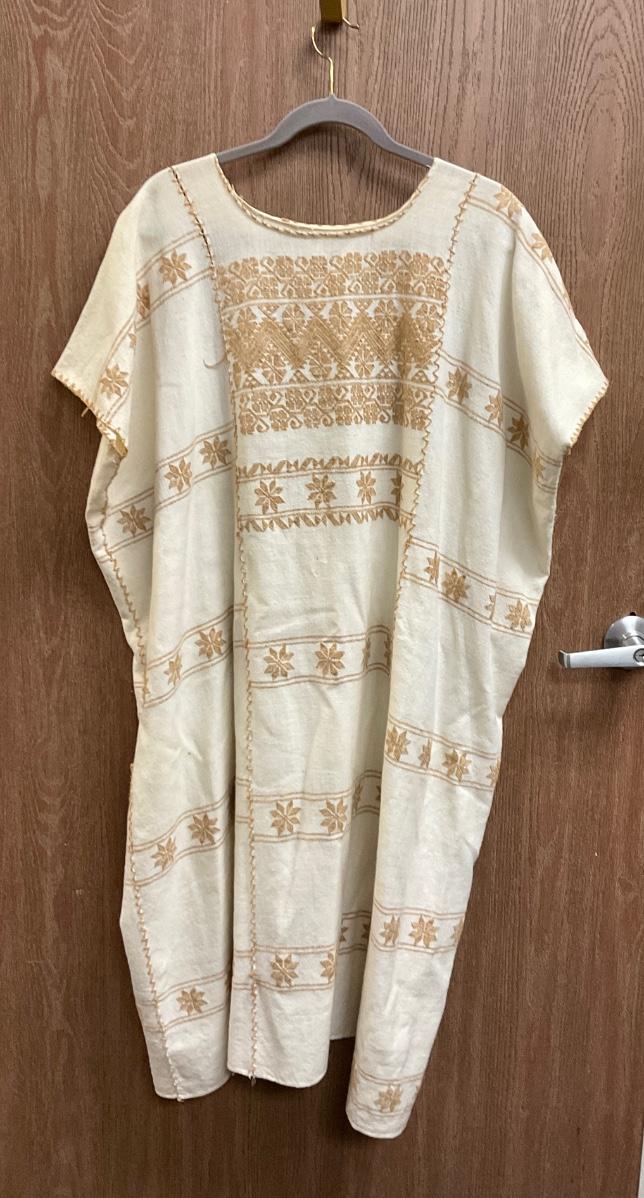 Vintage Embroidered Mexican Caftan Dress / Coverup - White Cotton and gold embroidery
