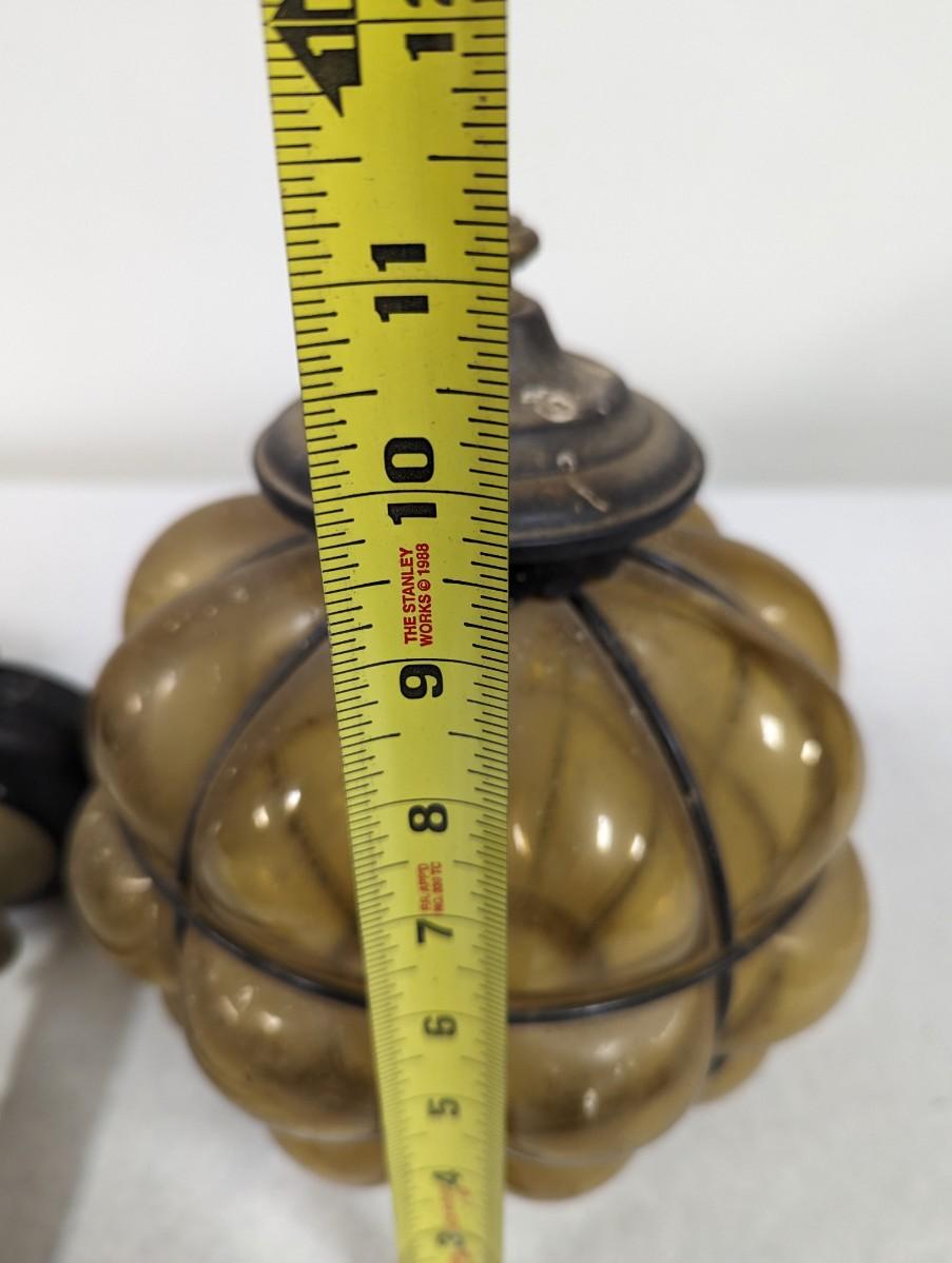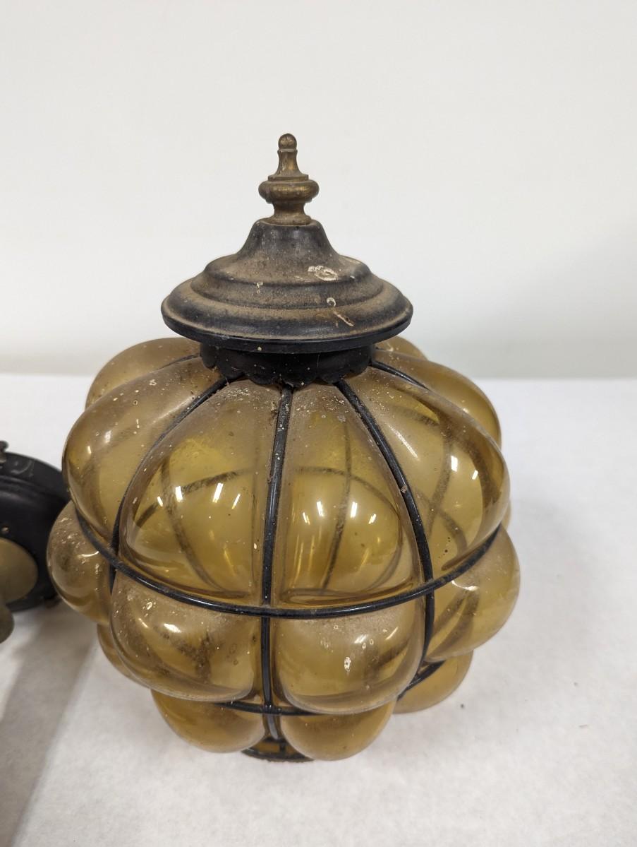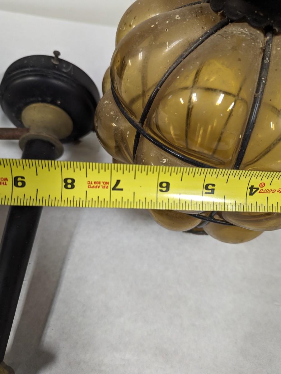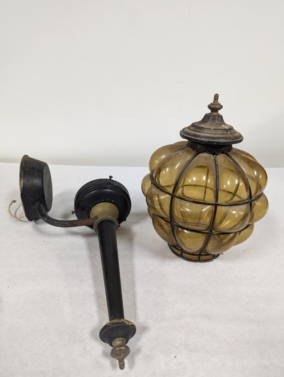 Vintage Caged Amber Glass Blown Lamp Shade Wall Sconce Electric Lamp