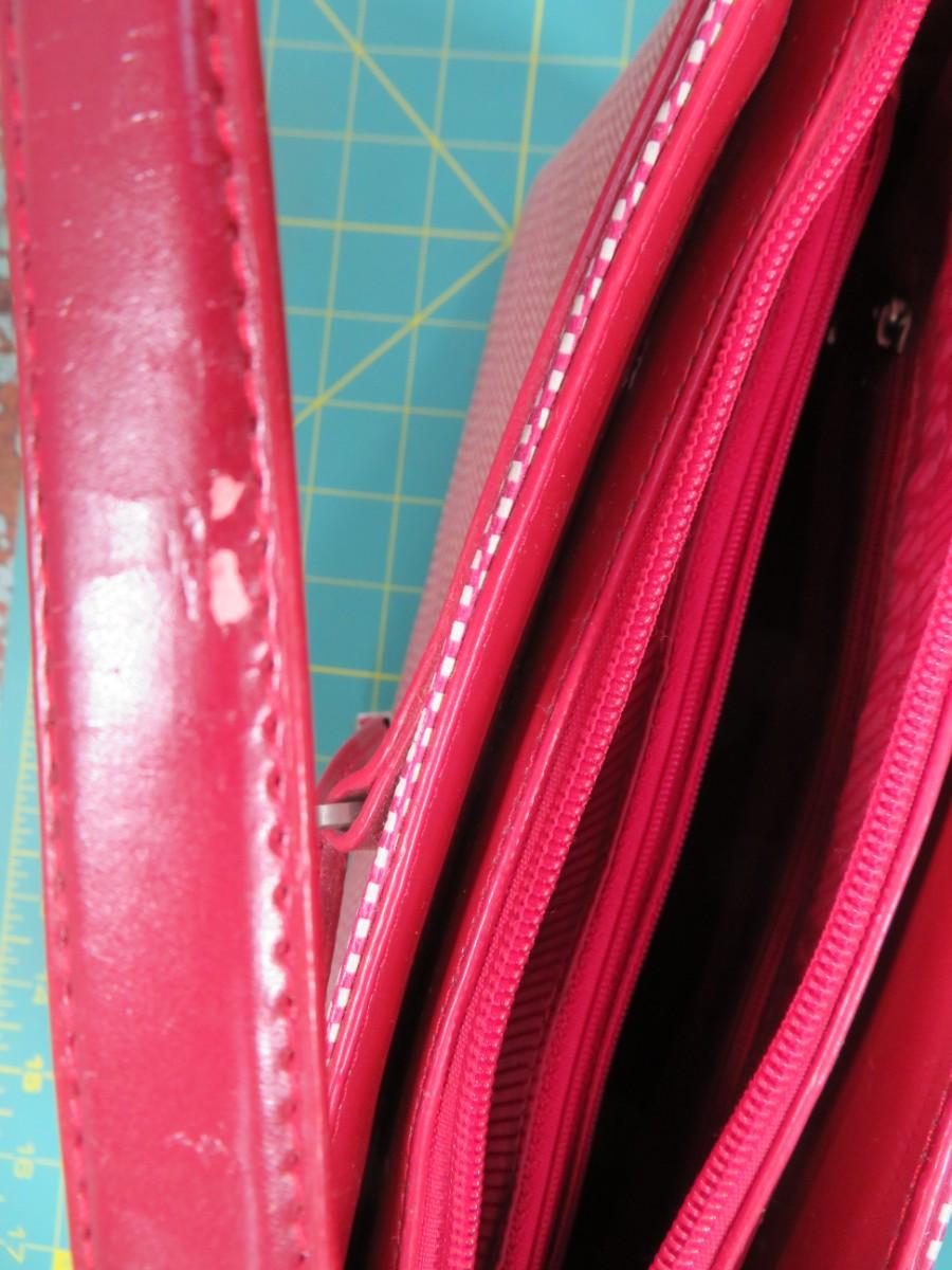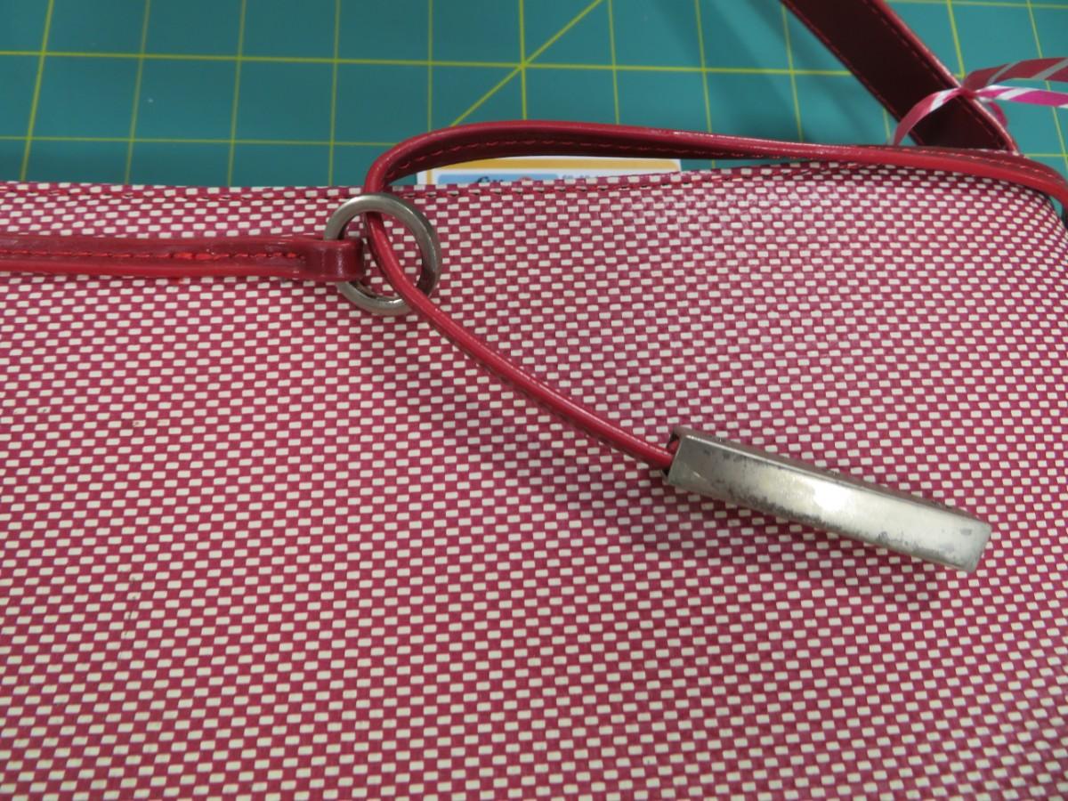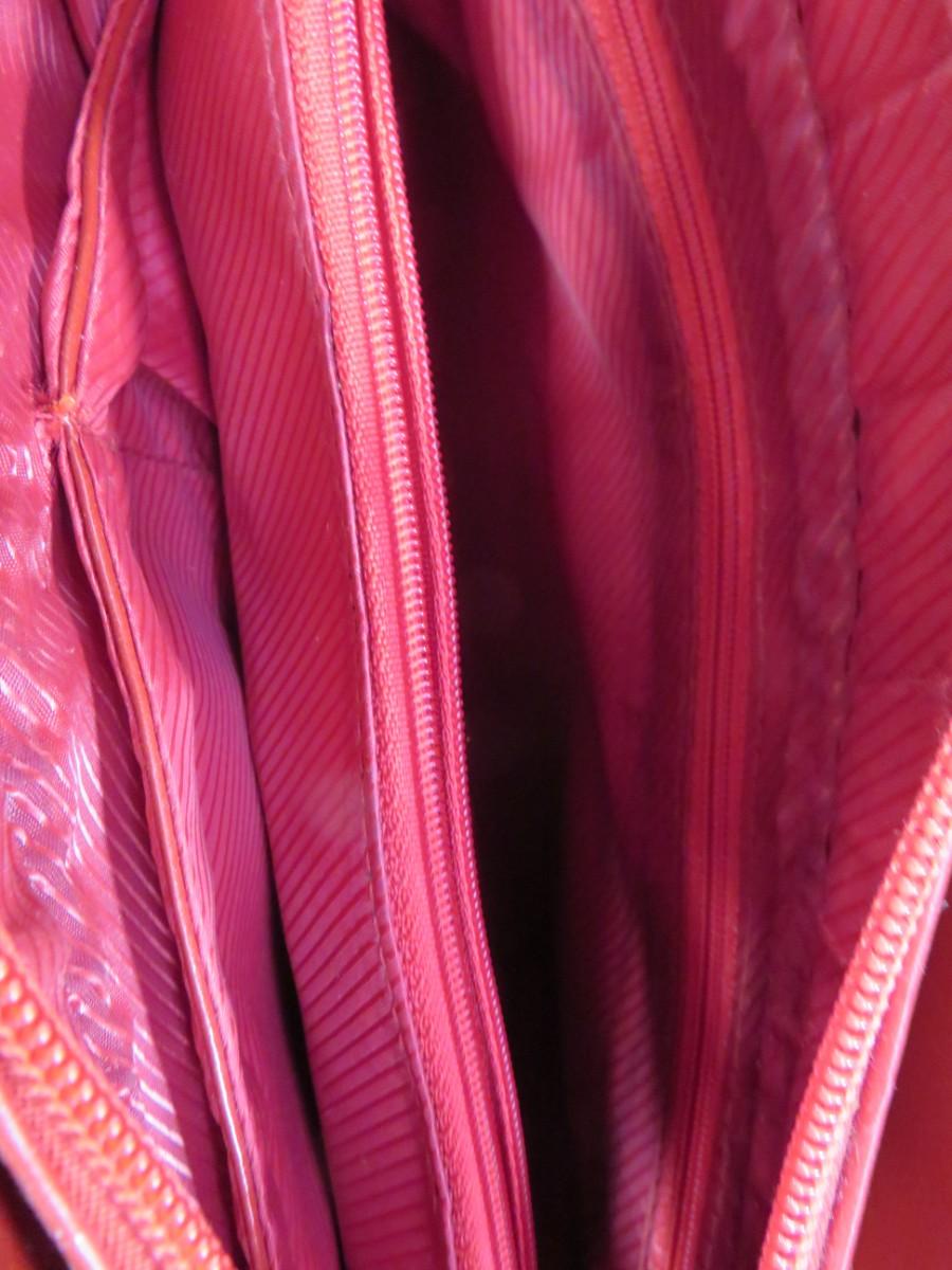 Vintage Red / White pattern Fowadi CaiDi Dior Handbag with Zipper closures, Inside Pockets.