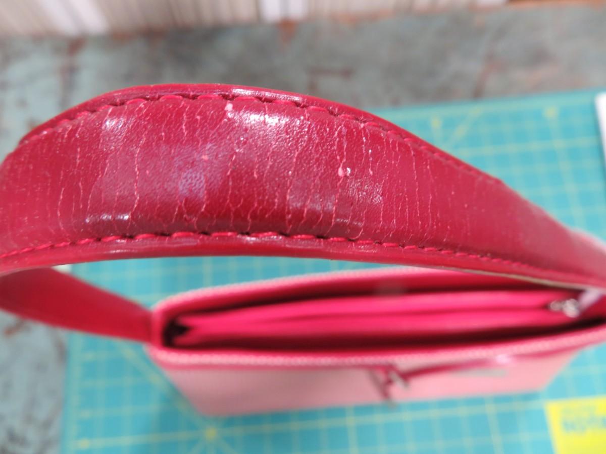 Measures 13" x 6.5" x 3" footed base. 9" strap. NOTE: Strap shows wear.