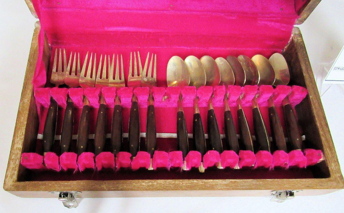 Missing one fork. Overall nice but needs cleaning and polishing. Heavy to ship. Shipping is available at shipping cost plus $5.00 handling fee on one box, $10.00 handling fee on two boxes, $15.00 handling fee on 3 boxes. Helps cover shipping materials and labor cost.