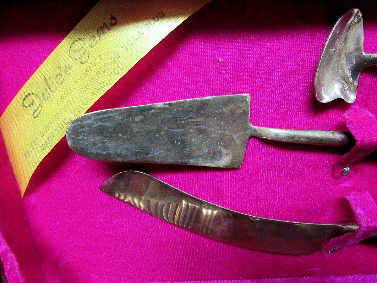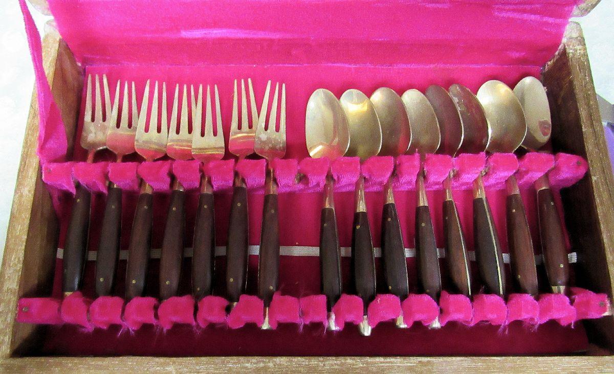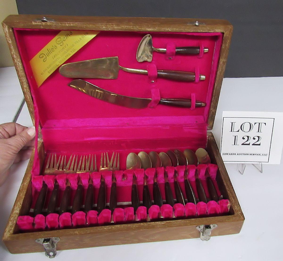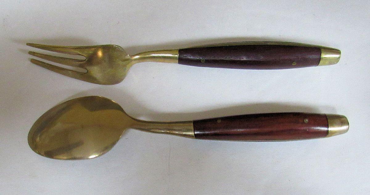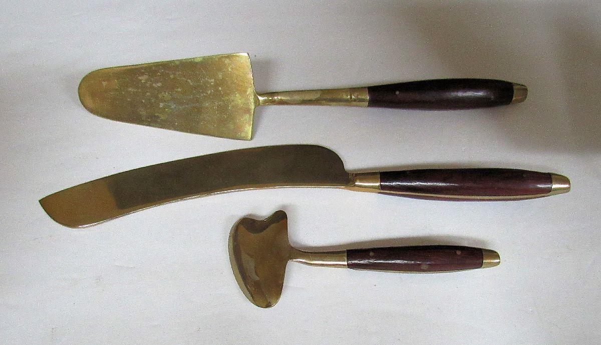 Vintage Cake/Ice Cream Serving Set, Brass/Wood, Julie's Gems Factory, Bangkok, Thailand