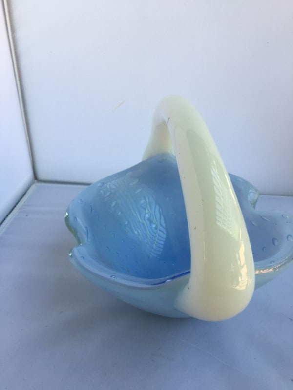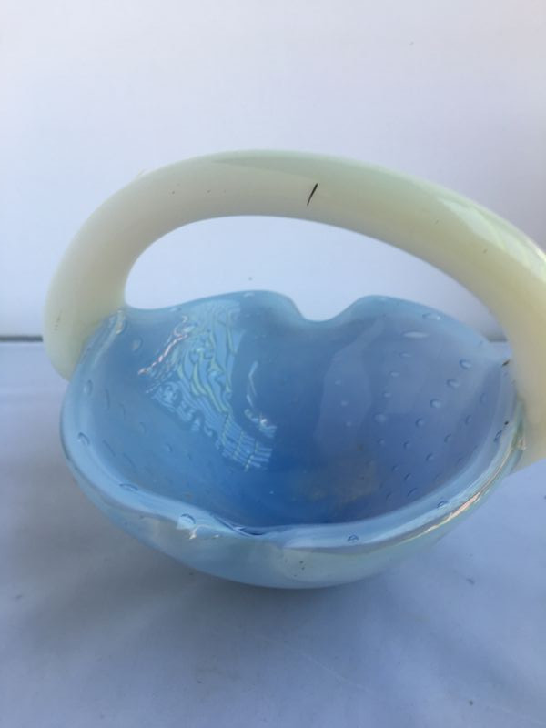 Beautiful basket, heavy glass in VG conditions, small black mark on the handle. Measures 6.5 X 8.5".