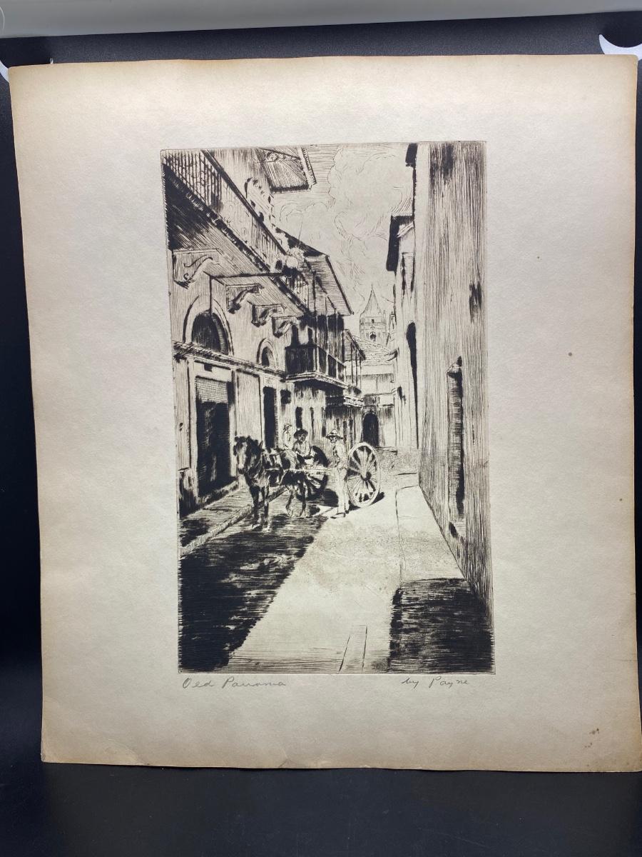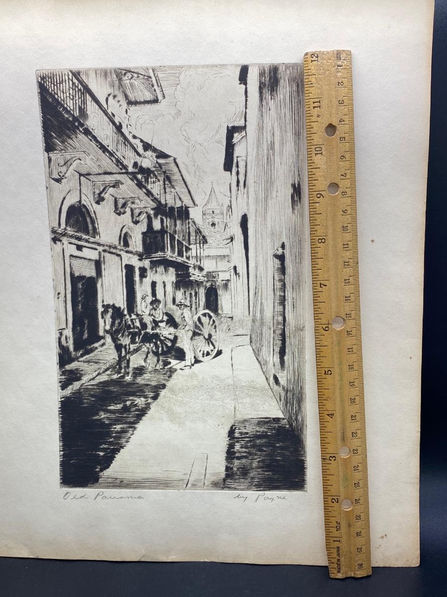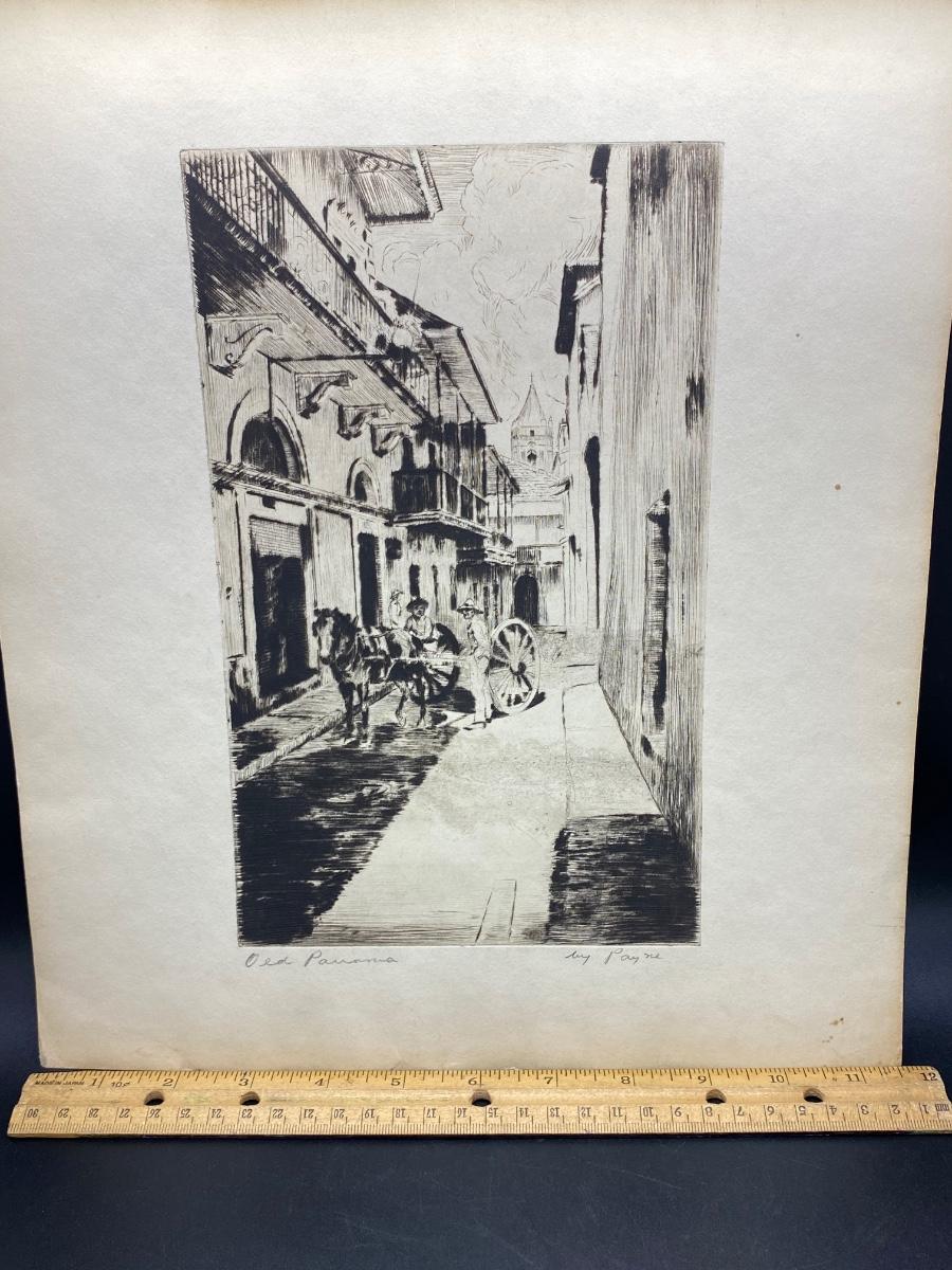 Vintage California Artist Raymond Payne Etching Old Panama Unframed Wall Art