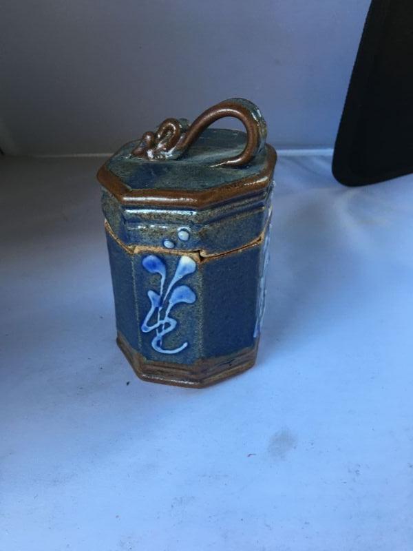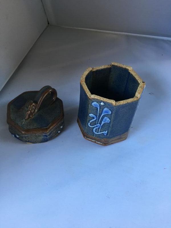 Vintage Lot of TWO California Jar with Lid Unusual With Uneven Edges and Saucer