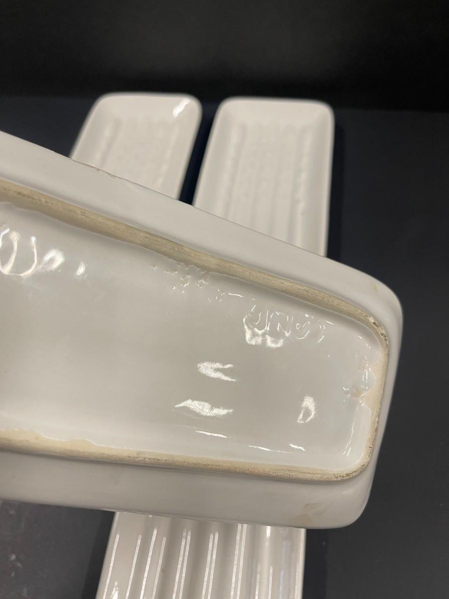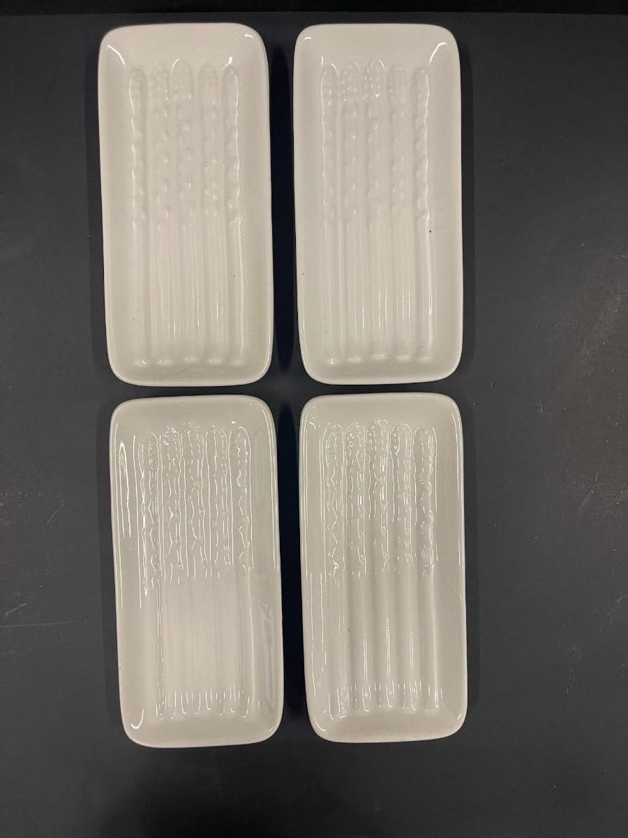 Vintage California USA Pottery White Asparagus Plates, Set of 4, in excellent condition. Each is 8 1/2" x 4" .