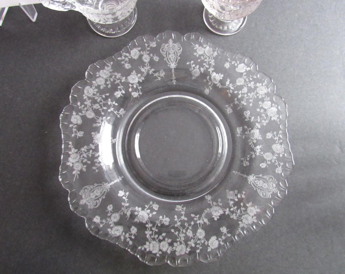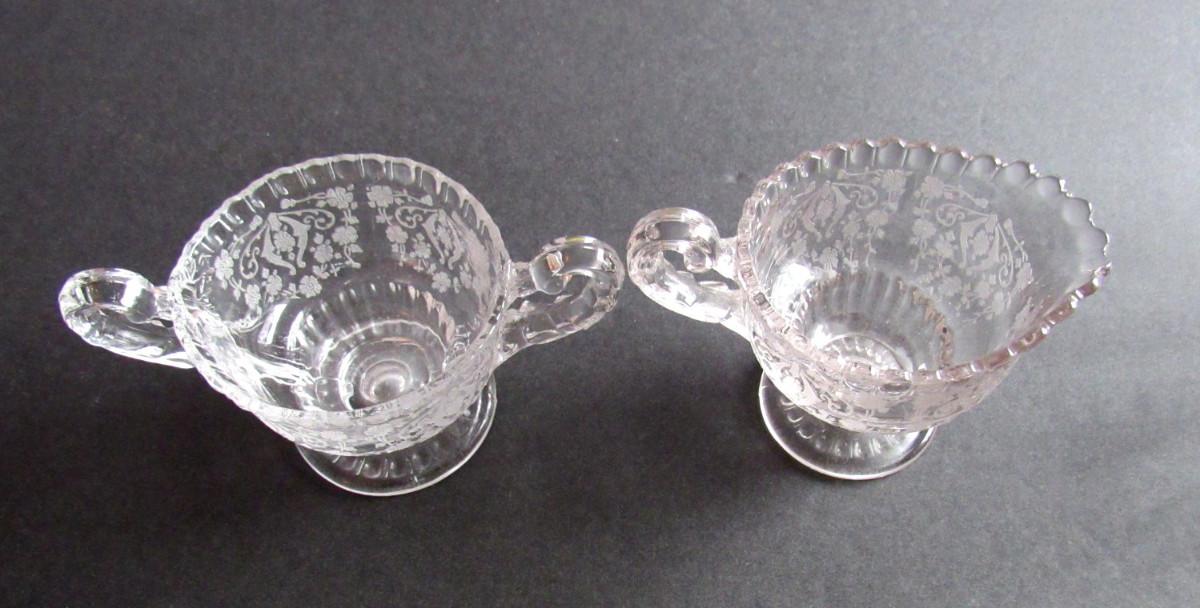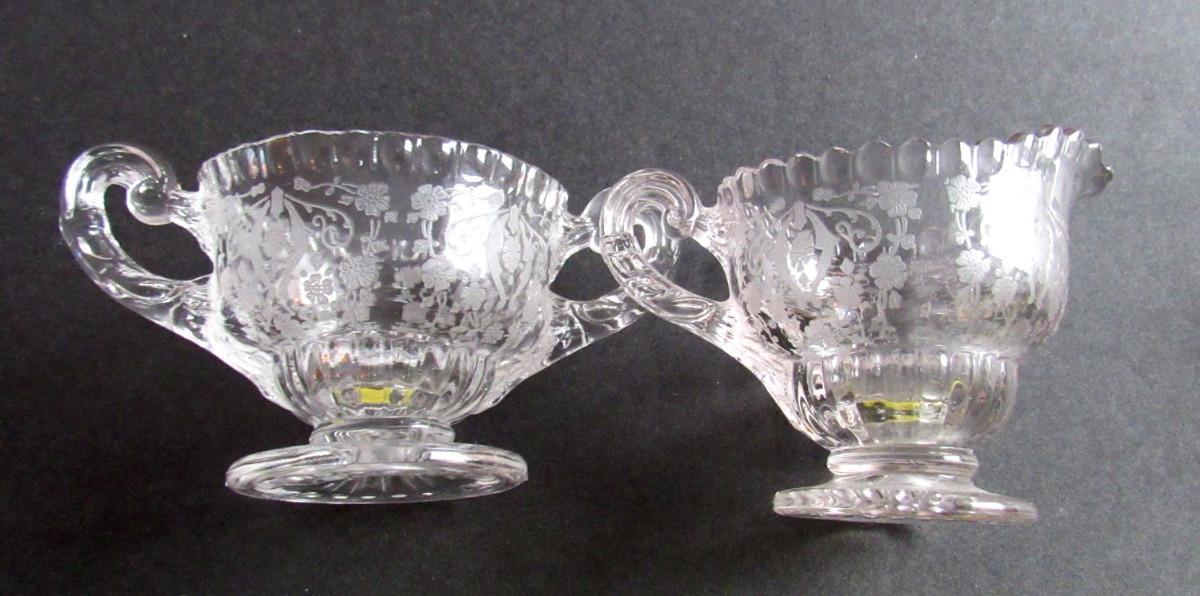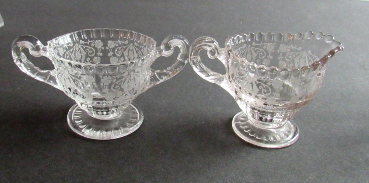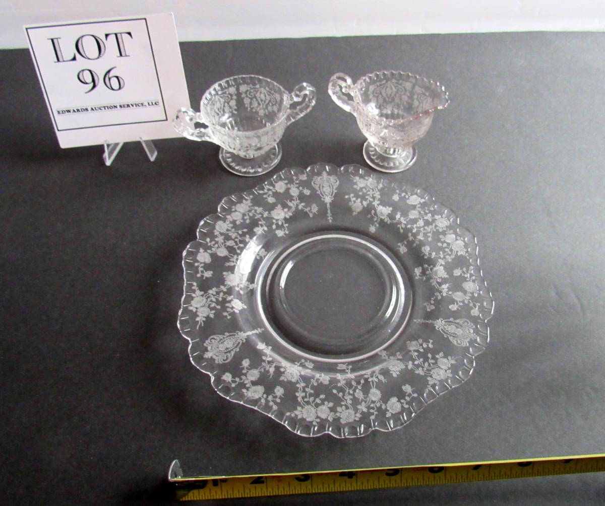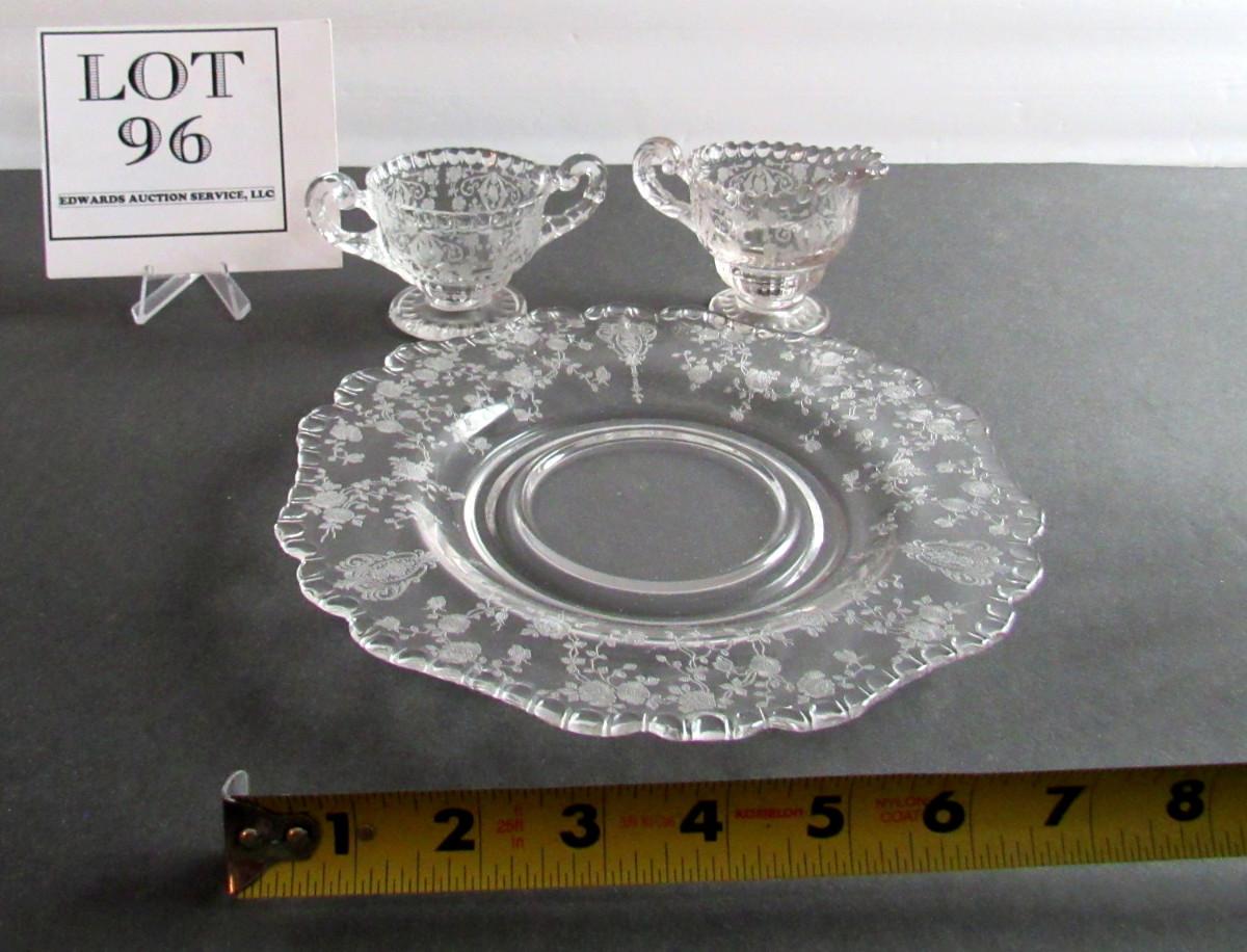 Vintage Cambridge Diane Individual Sugar and Creamer and Rosepoint Underplate