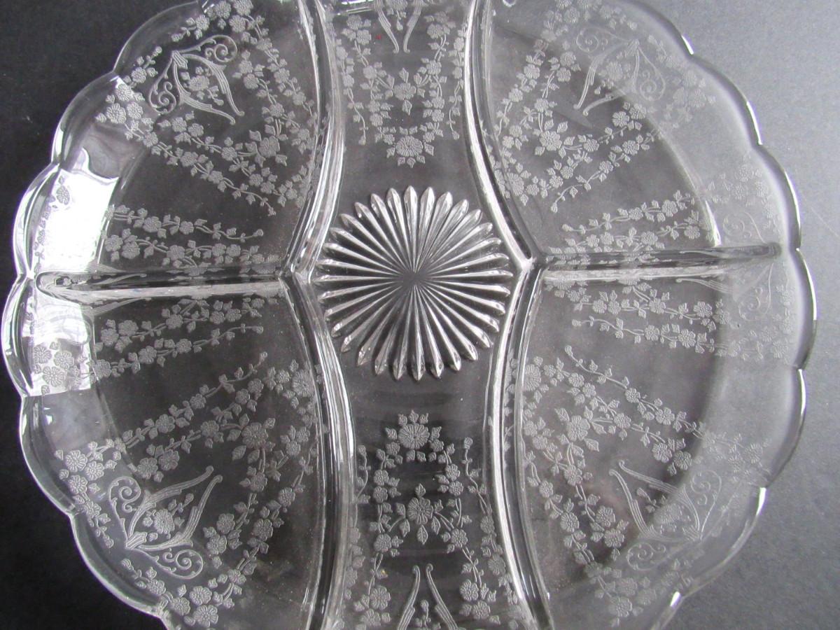 Vintage Cambridge Diane Pattern 5 Part Fancy Round Relish