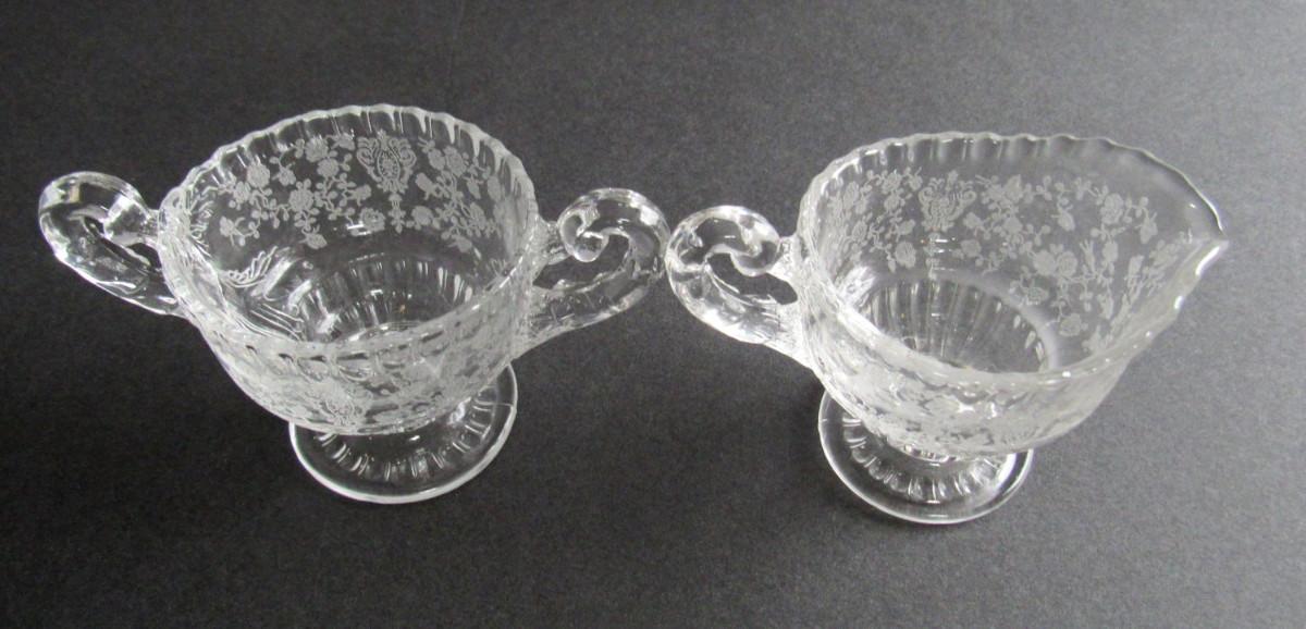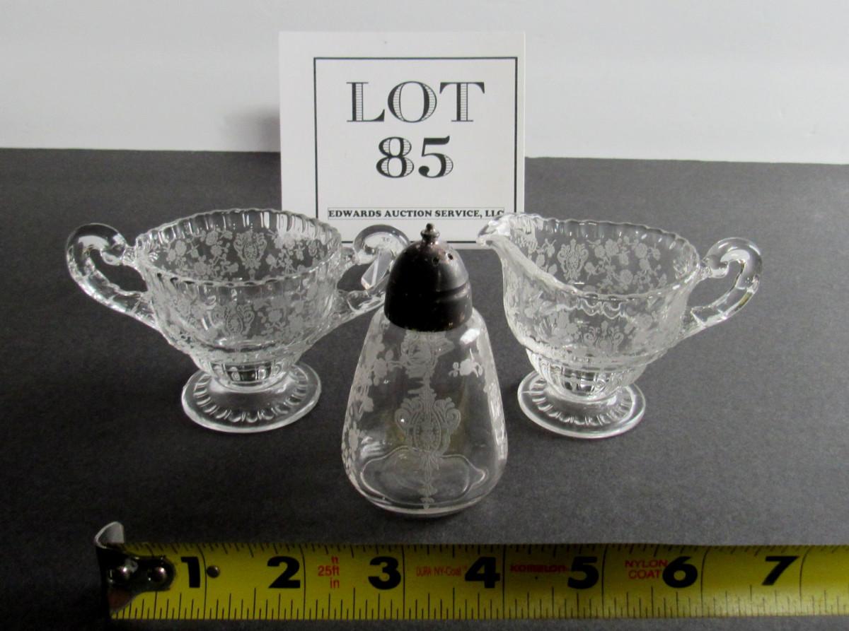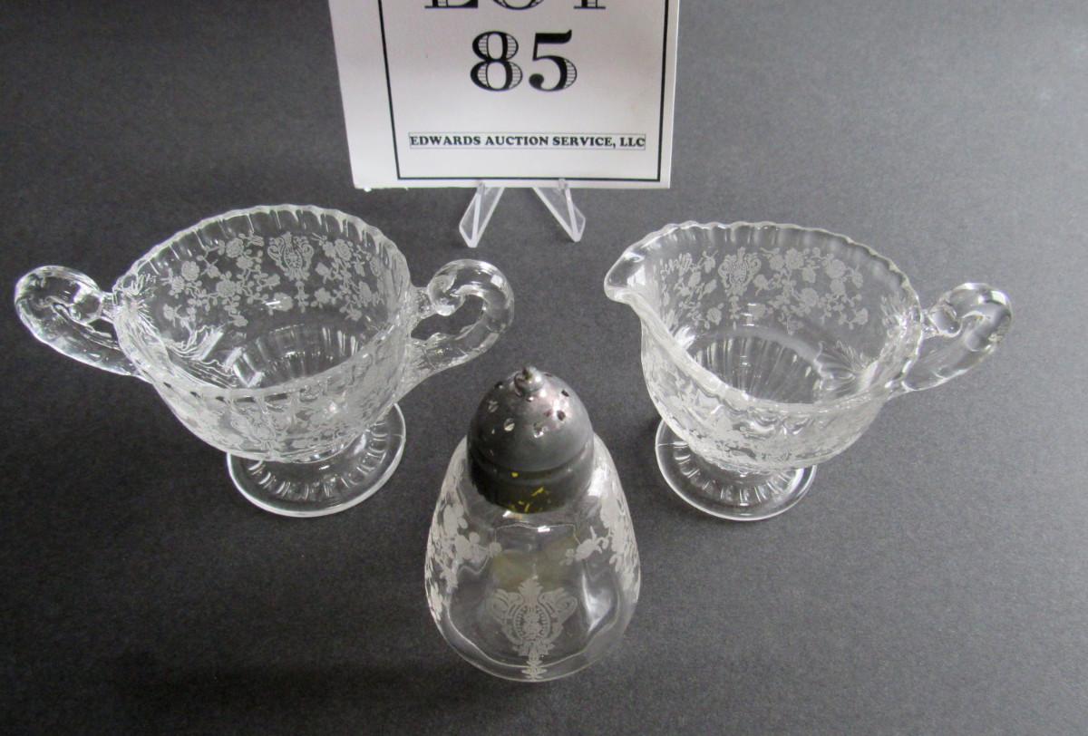 Vintage Cambridge Rosepoint Individual Sugar and Creamer and Salt Shaker