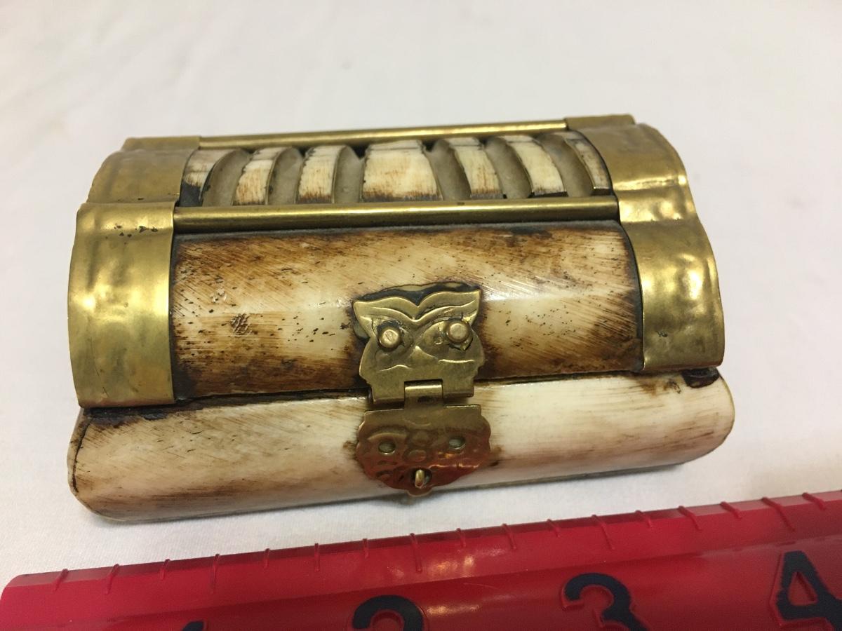Vintage Camel Bone Brass Trinket Jewelry Box Handmade India