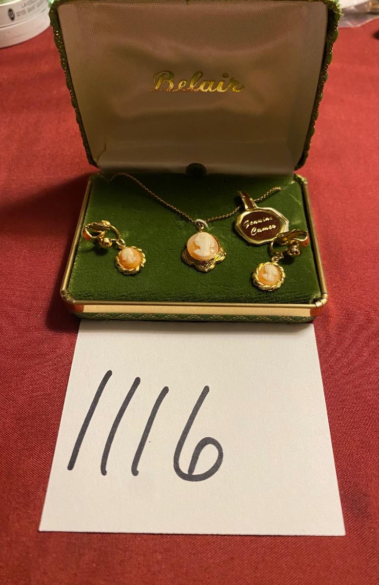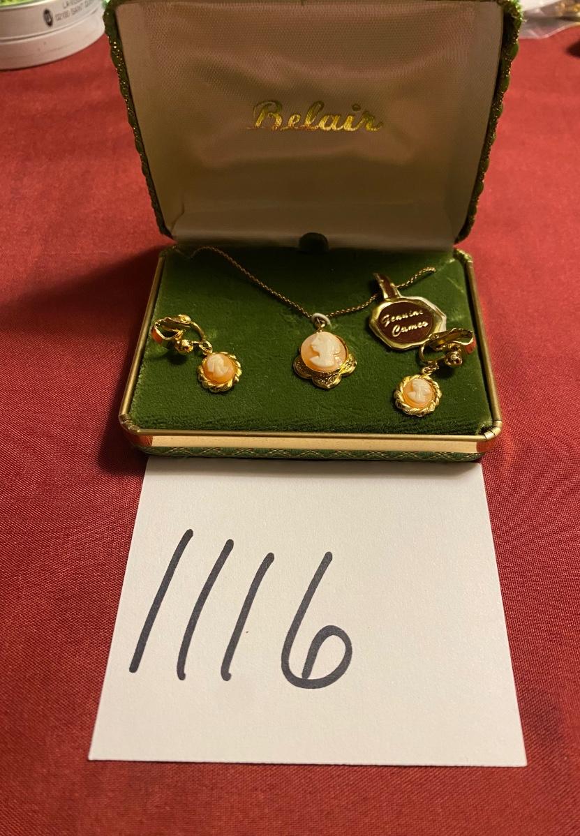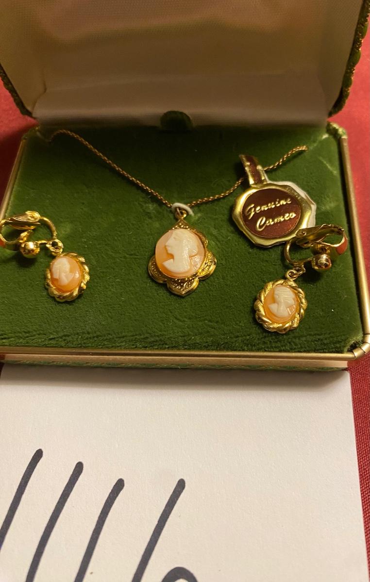 Vintage Cameo Necklace and Clip on Earrings