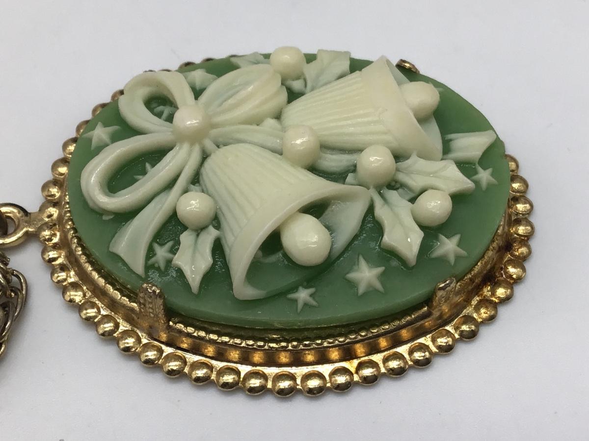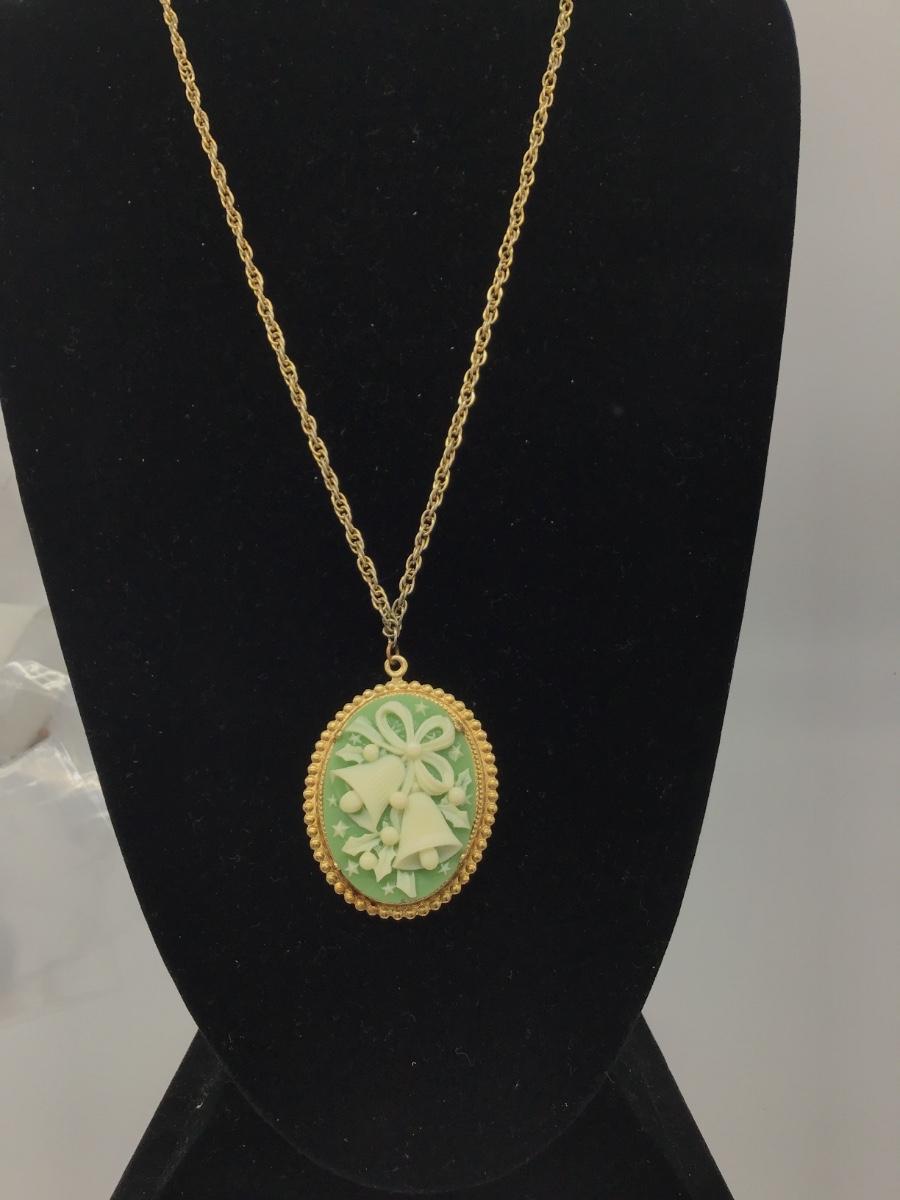Vintage Cameo Green Bell Pendant and Chain 🥰🥰🥰