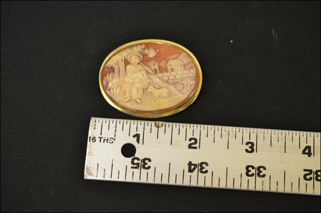Vintage cameo of saint Francis of Assisi 14K, can also be worn as a pendant, 2"