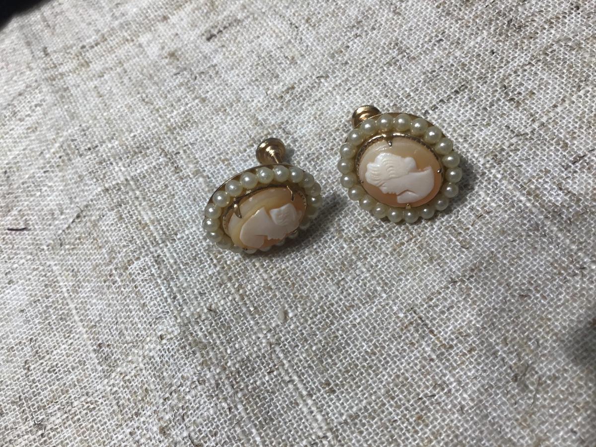 Vintage Cameo Screw Back Earrings