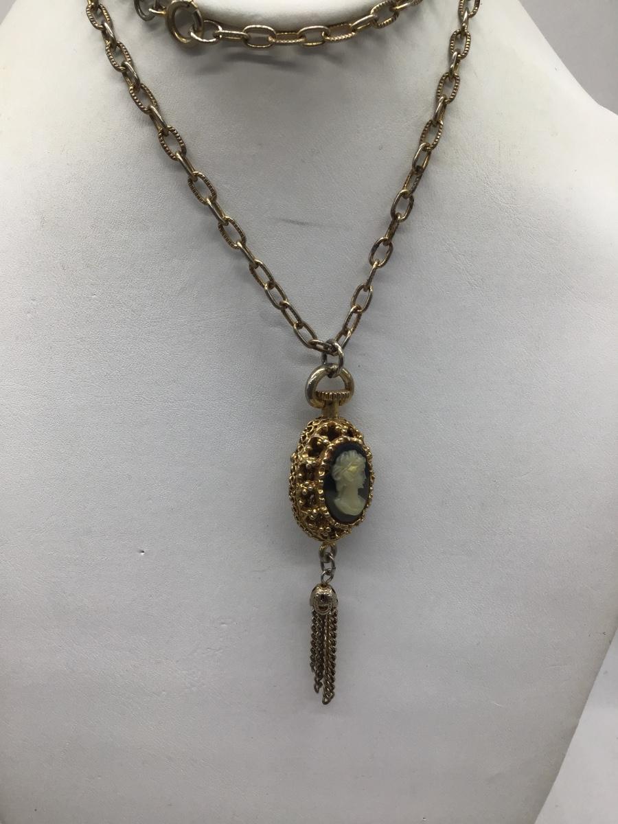 Vintage Cameo Tassel Necklace Reversible
